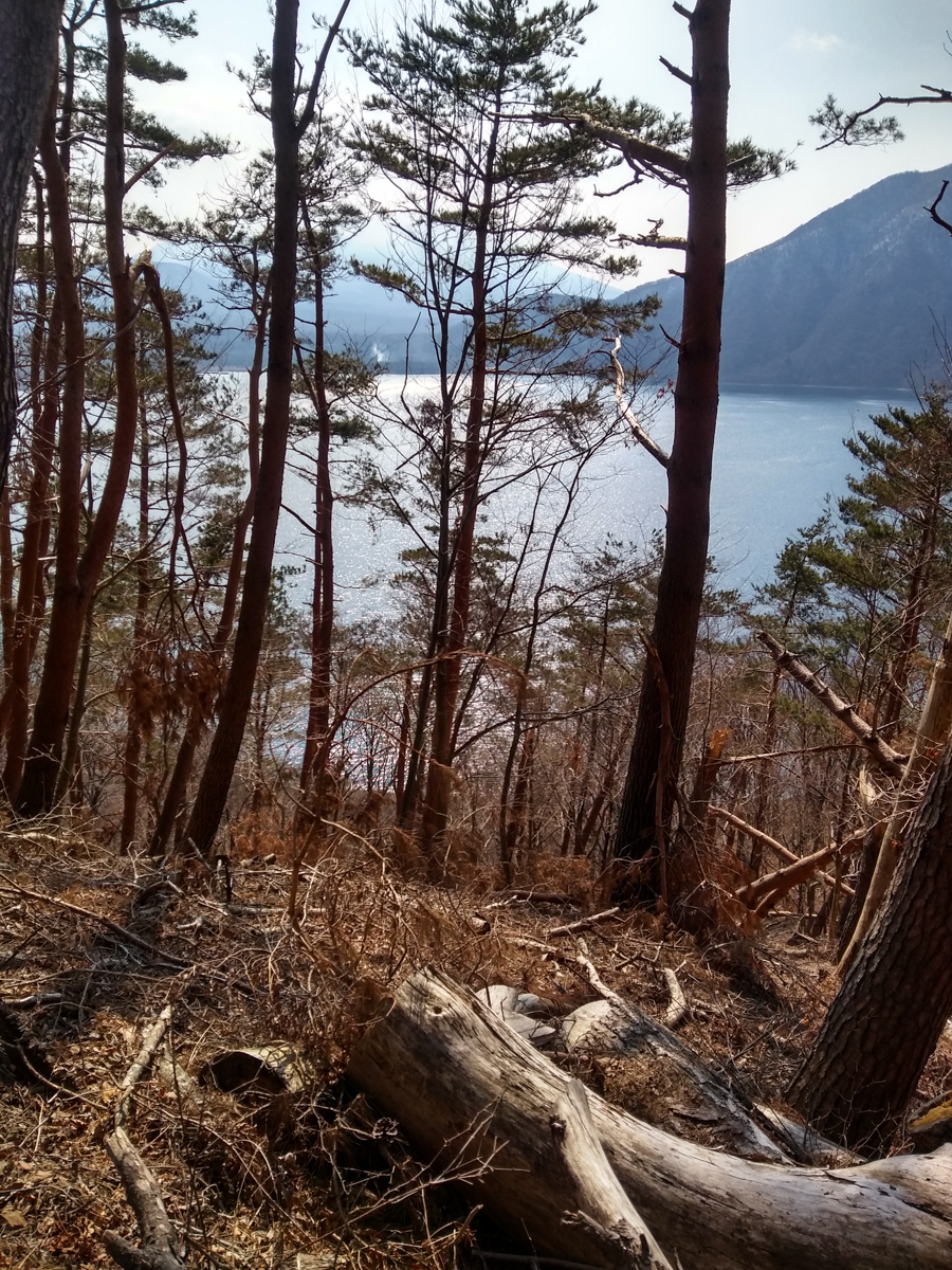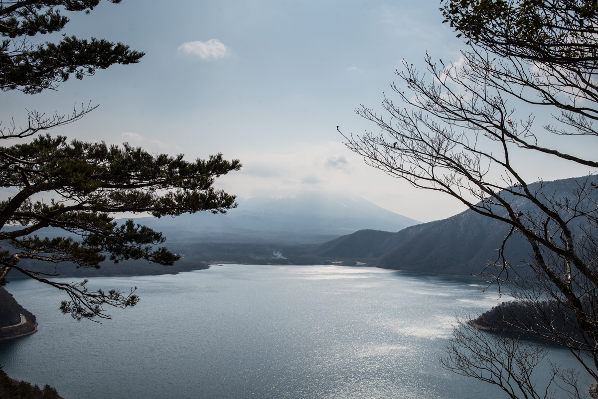 Le lac Motosu depuis un sentier de randonnée menant au poste d’observation Nakanoura-tôge.