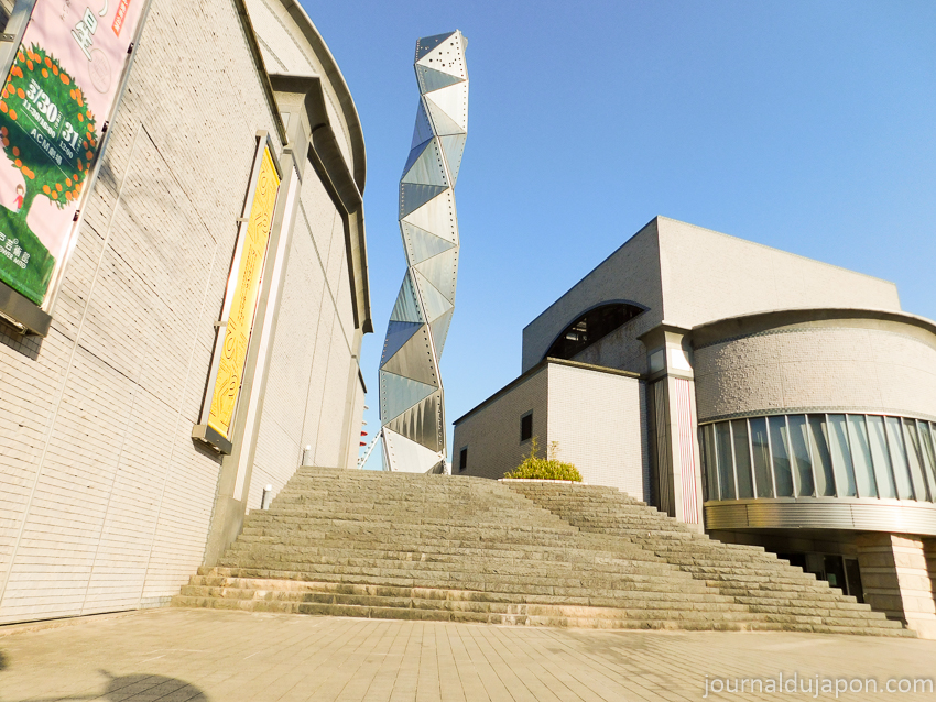 Construit en 1990, l’Art Tower Mito est un complexe artistique réunissant une galerie d’art contemporain, un théâtre et une salle de concert de près de 700 places, articulés autour d’une tour métallique de 100 mètres de haut. Son design singulier se compose de 28 tétraèdres qui, assemblés ainsi, ne sont pas sans rappeler la structure de l’ADN, et masque un observatoire situé à 86 mètres. C’est l’architecte Arata Isozaki, disciple de Kenzô Tange et lauréat du Prix Pritker 2019 pour l’ensemble de sa carrière, qui s’est chargé de sa conception pour célébrer le centenaire de la ville de Mito.