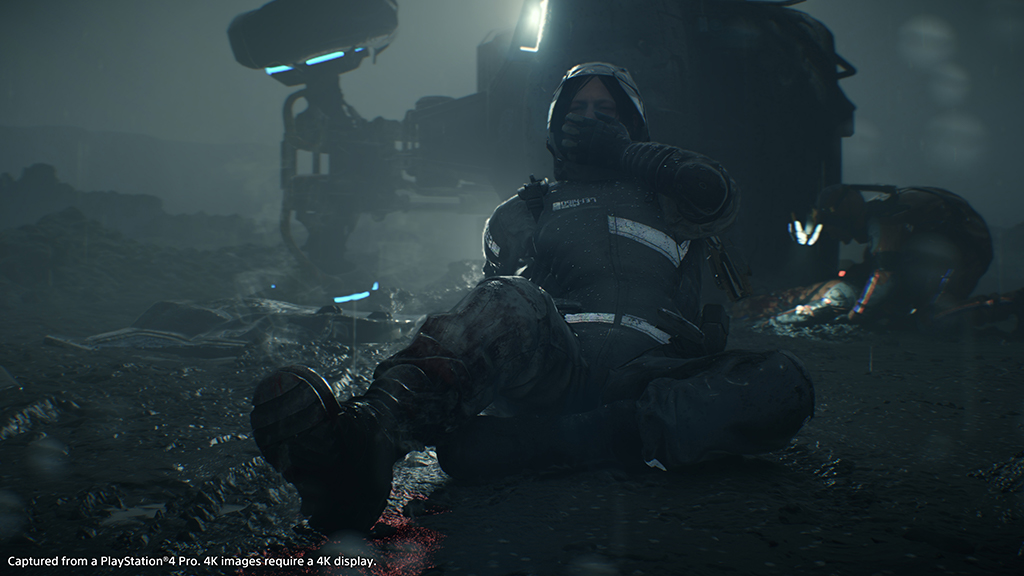 Dans un futur proche, la Terre est ravagée et de nombreux cratères se trouvent à l’emplacement d’anciennes villes. L’humanité est au bord de l’extinction depuis les explosions et les phénomènes paranormaux liés au Death Stranding. Les pluies (timefall) accélèrent le vieillissement et attirent des créatures spectrales surnaturelles, les « Échoués », qui hantent dorénavant la planète, à la recherche des derniers survivants. Le joueur incarne Sam Porter Bridges qui a la lourde tâche de voyager à travers ces terres dévastées pour livrer en vivres et matériels les rares humains qui ont survécu, enterrés dans des abris. On notera les nombreux clins d’œil de Kojima, dont le nom du héros n’est pas vide de sens. On pense tout de suite à l’oncle Sam, personnification des États-Unis et symbole qui rassemble les Américains autour de valeurs de liberté et de démocratie notamment. Porter pourrait aussi venir du verbe français « porter » et rappeler sa mission de coursier. Bridges pour l’image du « pont » qui relie les territoires mais aussi les hommes.