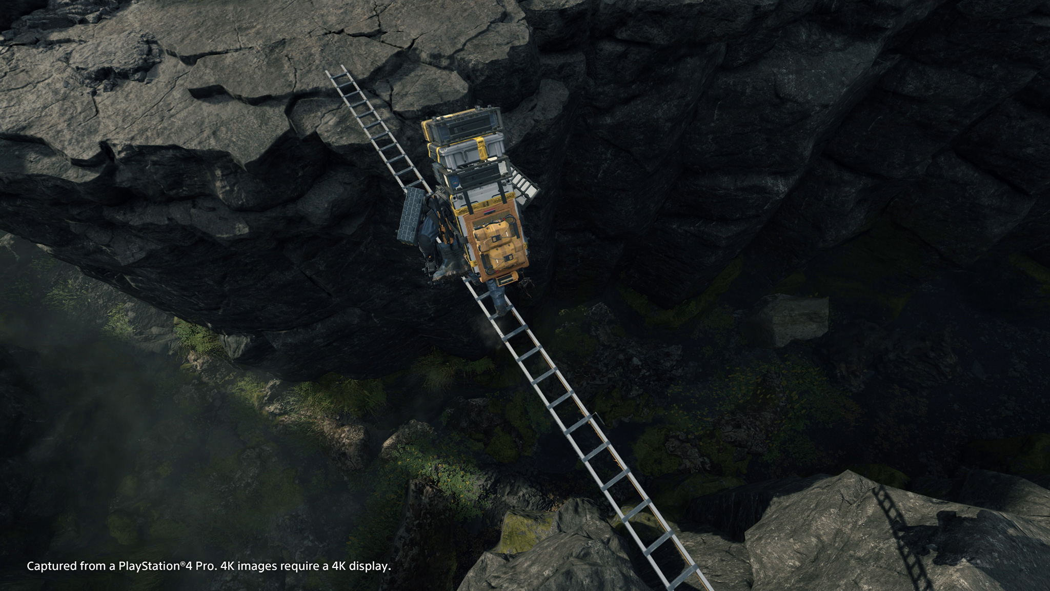 Le gameplay se découvre petit à petit et, pour l’apprécier, il ne faut pas s’arrêter aux deux premières heures. C’est comme un oignon : le joueur découvre chapitre après chapitre de nouvelles couches ou fonctionnalités qui enrichissent l’expérience. Hideo Kojima a choisi d’intégrer tout au long de l’aventure de mini tutoriels pour expliquer les différentes possibilités. Au début, Sam est un peu comme échoué sur une île déserte. Livraison après livraison, rencontre après rencontre, ses chances de survie augmentent grâce à la conception d’outils, d’armes, de moyens de transport ou d’infrastructures : échelles, cordes, ponts, exosquelettes, refuge, abri anti-pluie, moto, camion, pistolet, fusil d’assaut…
