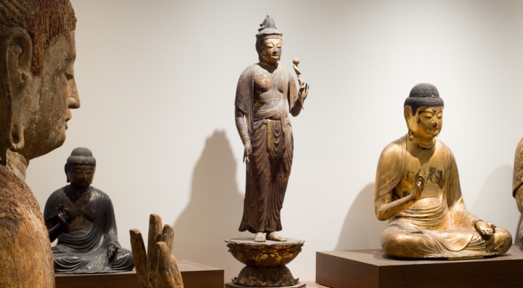 « Je faisais un bilan avec l’ambassadeur du Japon en France Masato KITERA et je me disais que depuis mon arrivée, entre les expositions à l’extérieur (festival international de photographie Kyotographie) et à l’intérieur autour du Japon avec des choses très différentes comme les 3 chefs d’œuvre de la sculpture de Nara nous sommes dans Japonisme 2018 tout le temps ! [NDLR : 2018 marquait le 160e anniversaire des relations diplomatiques entre le Japon et la France, ainsi que le 150e anniversaire du début de l’ère Meiji] D’ailleurs, pour cette exposition, 4 années d’échange avec la préfecture de Nara ont été nécessaires pour faire venir ces œuvres qui appartiennent à des temples. Ensemble, il a fallu ajuster le projet. Au début, ils souhaitaient plus d’objets et ils n’étaient pas sûrs. Et puis finalement, nous avons décidé de tous se concentrer sur trois grands chefs-d’œuvre pour qu’il y ait une unité de narration et pour au final avoir le Jizō bosatsu très fluide et calme dans la vitrine centrale avec deux figures de gardien absolument extraordinaires avec leur anatomie étonnante qui fonctionnaient très bien ensemble. En deux mois, ce sont 20 000 visiteurs ! » nous raconte Sophie Makariou.