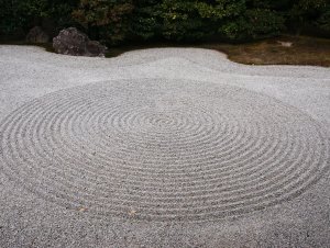 Tourner les pages, c’est également se laisser hypnotiser par les lignes ondulantes, les vagues et les cercles tracés sur les graviers des jardins secs.
