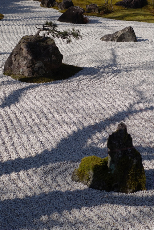Lorsqu’on visite un jardin japonais, on a généralement du mal à mettre en mots les sentiments qui affluent. Paix, sérénité, repos, silence, beauté. On admire un paysage, la nature mise en scène, des images parfaitement cadrées, des créations de montagnes, de rivières, d’étangs, parfois sans une seule goutte d’eau. Le regard reste de longues minutes sur une montagne de graviers, une vague tracée au râteau, un bouton de fleur légèrement coloré, un pétale posé sur la mousse, une racine tortueuse, une branche mystérieusement horizontale. Chaque détaille émerveille, chaque scène invite à la méditation.