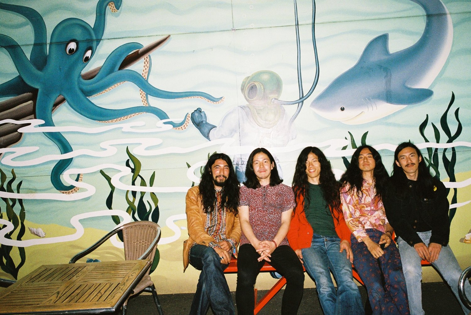 Kikagaku Moyo au grand complet : Daoud Popal, Ryu Kurosawa, Go Kurosawa, Tomo Katsurada et Kotsuguy ©Kikagaku moyo