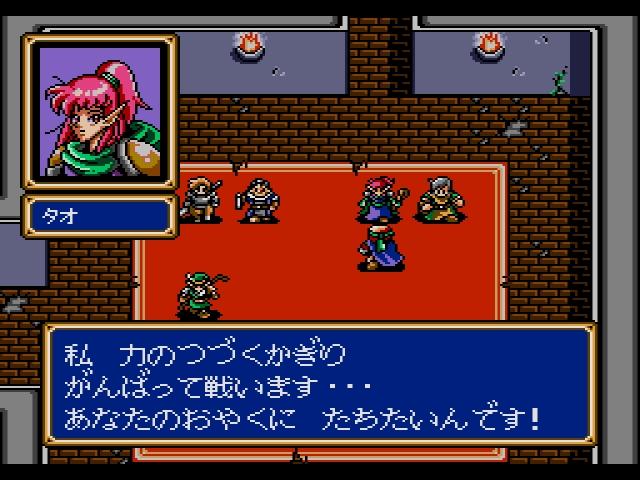 En effet, outre sa légère refonte graphique et sonore (pour mieux coller à la console) et une traduction dans cinq langues dont le français, c’est également un tout nouveau jeu qui se trouve devant nous. Bien sûr, il pouvait être fait à l’ancienne, mais il rajoutait, tout simplement, trois nouveaux personnages qui constituaient des chapitres de transition jusqu’au sixième. Narsha, la princesse de Runefaust, découvrait les noirs desseins de son royaume et cherchait quelqu’un qui pourra l’aider… jusqu’à trouver la Shining Force et l’intégrer.