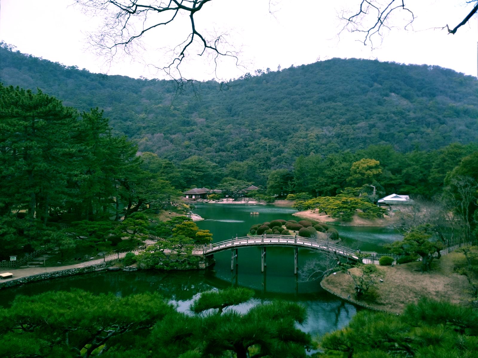 Ce jardin de 16 hectares, composé de six bassins et de 13 collines artificielles, est l’un des plus beaux du Japon. Il est logiquement l’attraction touristique la plus populaire de la ville et se visite à n’importe quelle saison. Le terme Ritsurin signifie « bosquet de châtaigniers », mais on retrouve principalement des pins âgés de plus de 300 ans. Ils sont taillés comme des bonsaïs tout en gardant leur grandeur.