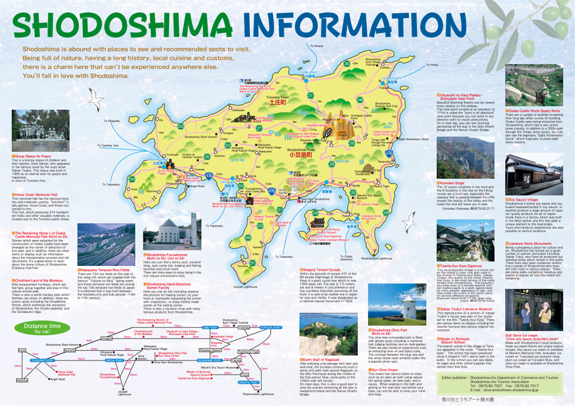 Entrée gratuite, depuis le port de Tonosho, prenez le bus Sakate line, arrêt Olive Koen Guchi.