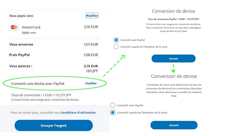 Quant à la conversion de vos euros en yens, la problématique est celle du taux de change en vigueur au moment de votre achat appliqué par votre moyen de paiement. Si vous passez par Paypal, vous utiliserez le taux de change effectué par PayPal. Si vous utilisez votre carte bancaire, c’est le taux de votre banque. Le problème : que cela soit PayPal ou votre banque, les deux facturent une commission de change.