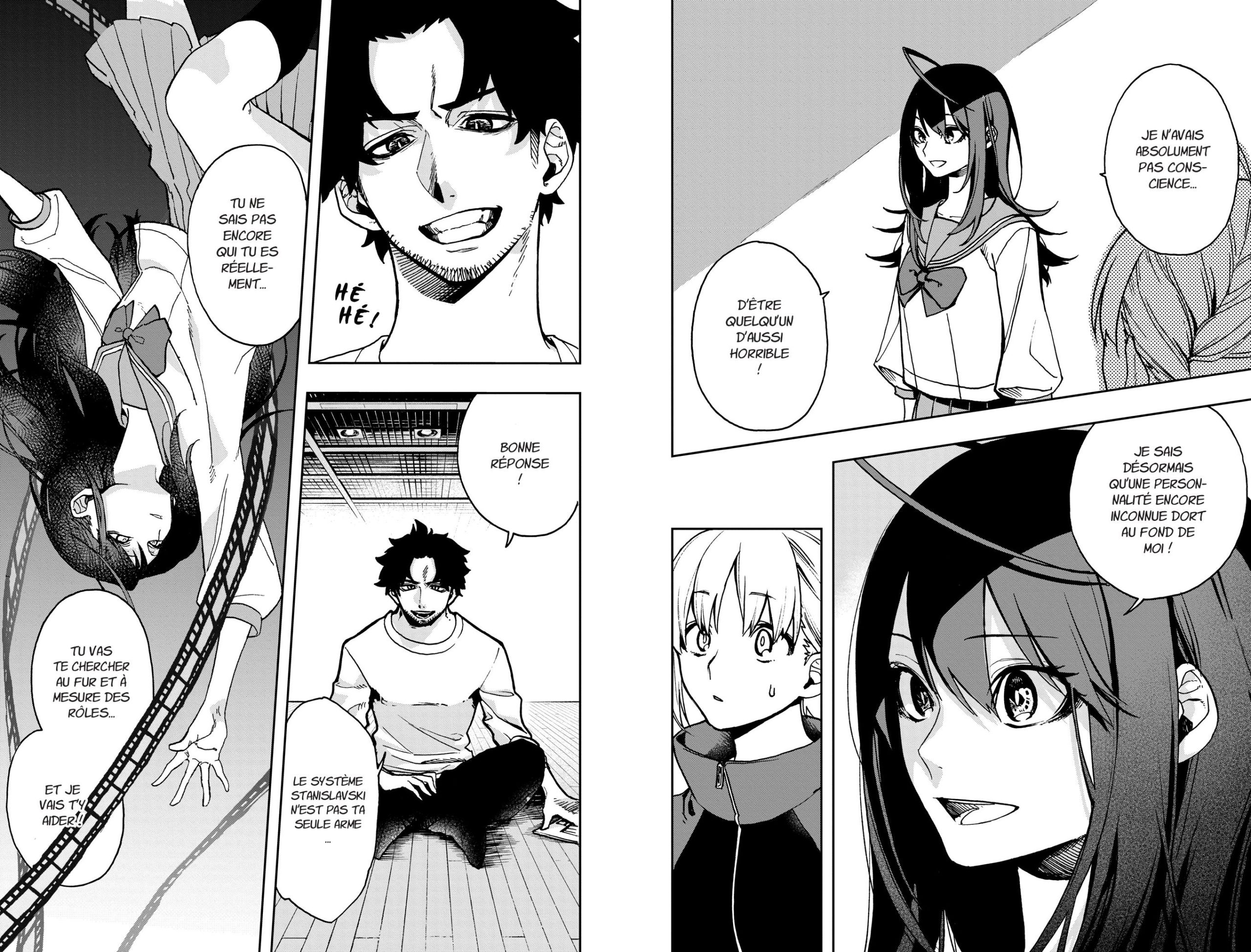 Puis, avec Kuroyama, MATSUKI et USAZAKI nous offrent un mentor atypique. Il est prêt à tout pour réaliser son projet, de la création de sa propre agence à l’amélioration du jeu d’acteur de Kei, quitte à ignorer les risques qu’entraîne le système Stanislavski. Son excentricité contribue énormément à l’épanouissement de la jeune fille, et leurs prises de bec étoffent le récit de quelques moments comiques : à leur deuxième rencontre il la kidnappe… pour l’emmener participer à un casting… Un peu extrême comme façon de faire !