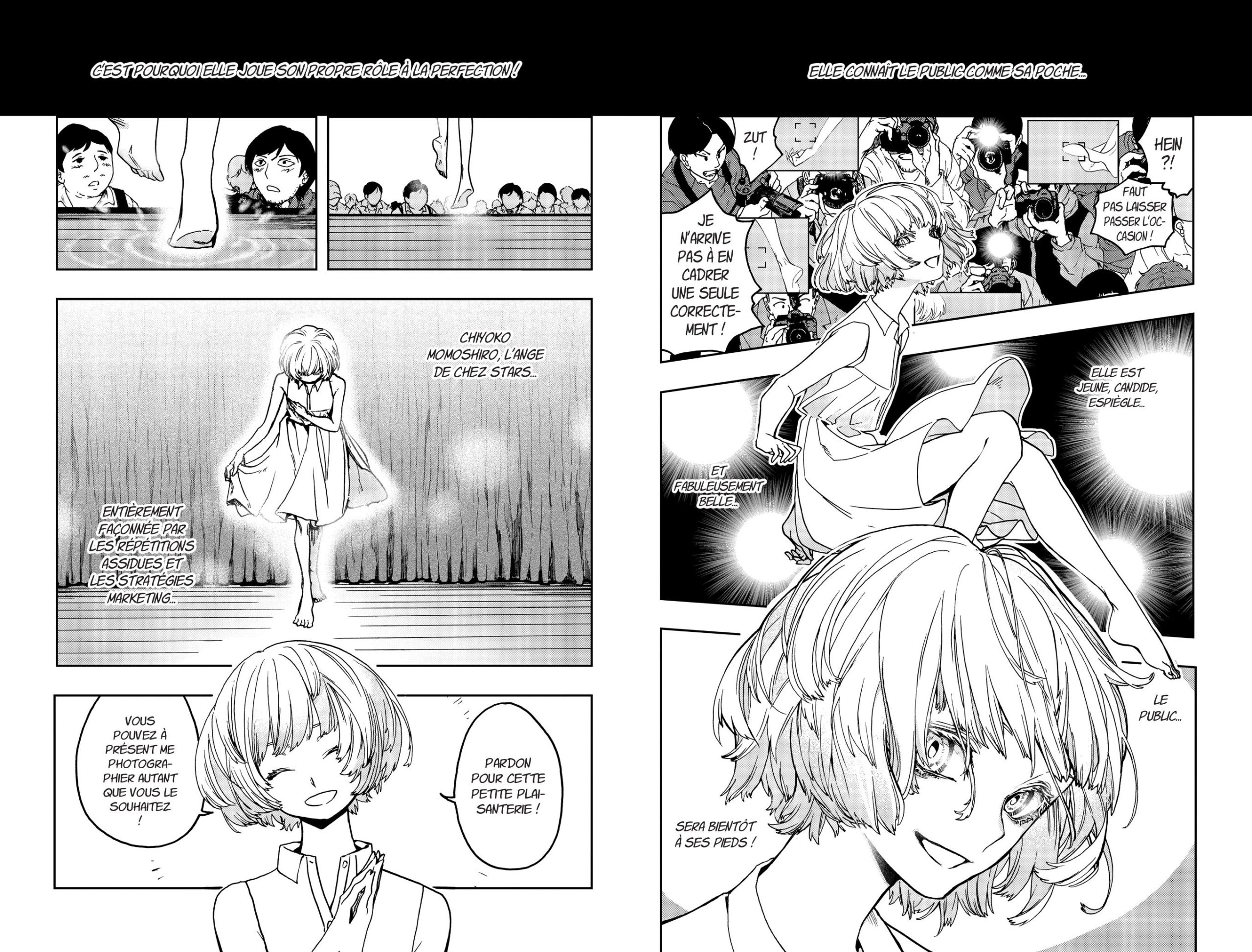 Mais ce choix qui change Chiyoko en véritable objet commercial la pousse à ne pas comprendre le jeu de Kei malgré l’intérêt qu’elle ressent vis-à-vis d’elle, au point de dire que le jeu de la jeune fille est tellement naturel… qu’il ne paraît pas crédible. En utilisant l’idée du « masque » MATSUKI et USAZAKI entoure Chiyoko Momoshiro de mystère, et nous pousse comme avec Kuroyama à nous poser des questions : Pour quelle raison a-t-elle choisi de devenir actrice ? Pourquoi est-elle aussi obnubilée par le regard des autres, au point de tenir fermement à sa popularité et de voir en Kei une rivale et un moyen d’améliorer son jeu ?