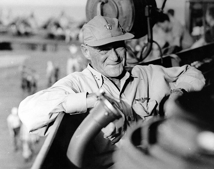 L’amiral Mitscher à bord de l’USS Lexington, son navire amiral en 1944 ©U.S. Navy (Collection Naval History & Heritage Command)