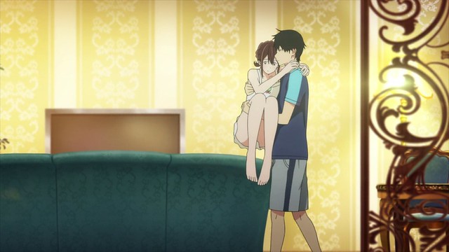 Le studio VOLN réunit un staff assez prestigieux pour l’adaptation de Je veux manger ton pancréas. A la réalisation et aux storyboards Shinichiro USHIJIMA (Highschool of the Dead, One Punch Man, Death Parade) utilise son expérience pour mettre en avant la dimension dramatique présente dans l’histoire en décrivant par touches aussi douces et discrètes que tristes et réalistes la gestion du cancer du pancréas. Mais ce qui fait la force de Je veux manger ton pancréas est la coexistence de ce côté dramatique à d’un côté slice of life (tranche de vie) rendue possible grâce au travail de direction de l’animation de Yuichi OKA (d’après le travail original de IOUNDRAW). Le résultat est un mélange équilibré des deux côtés pour que chacun d’eux soit mis en avant le moment voulu. Pour preuve, la séquence d’escapade d’Haruki et Sakura, légère et joyeuse, durant laquelle, et grâce à une bonne transition, Yuichi OKA remet en perspective la difficile réalité de la situation que le duo vit avec la maladie de Sakura qui refait surface. Cela fait penser à Eromanga-sensei, anime sur lequel il occupait le même poste et où se retrouve ce travail de transition en plus d’un travail particulier sur les couleurs visible aussi sur Je veux manger ton pancréas avec des tons clairs ou acidulés pour les séquences douces et des tons plus sombres ou ternes sur les séquences tristes. Ajoutons à cela, le soin apporté à la profondeur de champ marquée par des éléments qui non seulement structurent le cadre mais renforcent la position des éléments dans ce dernier.