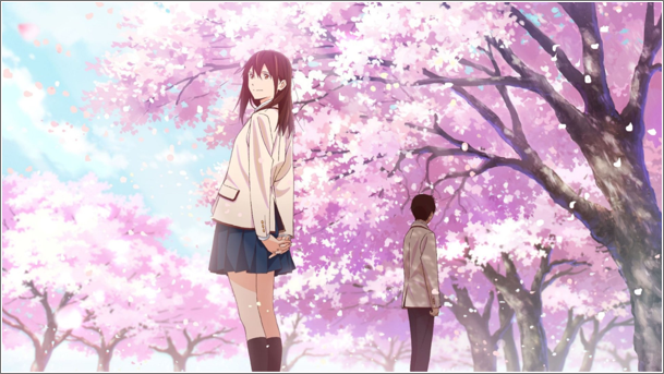 Si c’est Sakura qui déclenche les actions et réactions dans l’histoire, Yoru Sumino nous la partage à travers Haruki Shiga dont le côté introverti et renfermé contrebalance le côté extravertie et populaire de Sakura, offrant ainsi une peinture des deux facettes de la vie d’adolescent. Comme pour son personnage féminin, l’auteur s’inspire une nouvelle fois de la belle saison pour nommer son personnage masculin : en effet, on retrouve dans le prénom d’Haruki, Haru (春) qui signifie printemps en japonais, saison qui symbolise dans de nombreuses cultures le renouveau, une expansion, l’ouverture voire même l’échange et la communication. Haruki et Sakura, vont ainsi s’ouvrir l’un à l’autre, Haruki étant le seul à qui Sakura se confie tandis qu’à travers elle, le jeune garçon prend goût à la vie, apprend à rire et commence à aller vers les autres… Et tous les deux se dirigent vers une nouvelle étape de leur vie dans de fabuleux décors de cerisiers en fleurs qui offrent au printemps le plus bel écrin à la place qu’il occupe dans l’œuvre.