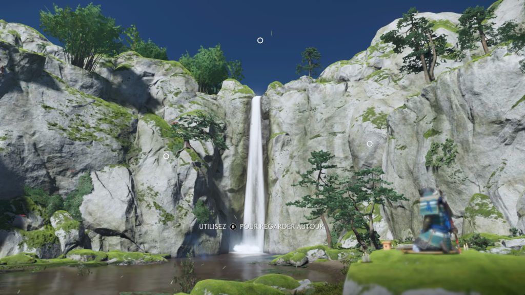 Ainsi dans Ghost of Tsushima, si l’action est un élément clé du jeu, la nature et l’exploration sont aussi au cœur du gameplay et bien utiles à la progression du Fantôme. Mine de rien, l’ajout du vent plutôt qu’une flèche directrice ou une boussole pour guider Jin est une belle trouvaille qui apporte un vent de fraîcheur et d’originalité ! En observant les paysages, le joueur peut repérer des zones à explorer… « Tiens, de la fumée au loin. » Un habitant a besoin d’aide ? Ce feu indique-t-il la présence de Mongols ? La faune par l’intermédiaire des renards ou d’oiseaux dorés aidera le samouraï en lui indiquant des lieux intéressants comme : des sanctuaires d’Inari permettant de s’équiper de plus de charmes en même temps (amulettes qui renforcent les compétences et caractéristiques de Jin) ; des onsen pour augmenter la barre de santé maximale ; des piliers d’honneur pour obtenir des skins pour les armes ; des phares à allumer ; des sanctuaires shintō visibles de loin avec leur torii qui annoncent des séquences de plateforme et d’escalade pour gagner des charmes…