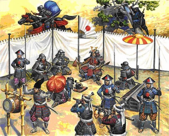 L’ouvrage passe en revue les unités de combat en commençant par les unités spéciales avec les hatamoto puis les unités de samouraïs à pieds (kahizamurai) ou montés (kibamusha) et les unités d’ashigaru constituées par spécialité (corps de lanciers, d’arquebusiers et d’archers). Puis vient le déroulement des batailles. Le Japon étant une terre de superstitions populaires et de religions aux influences shintō, bouddhistes et taoïstes, les généraux n’oublient d’adresser leurs prières aux kami et aux bouddhas avant de partir à la guerre. Citons en exemple : Hachiman, kami de la guerre ; le kami de leurs ancêtres ; Fudō Myōō, divinité associée au feu et à la colère qui est l’un des cinq rois du savoir et gardiens de la loi bouddhique. Des astrologues et maîtres du ki (ou chi) d’inspiration taoïste conseillent et indiquent aux seigneurs les jours fastes ou néfastes pour partir à la guerre. L’époque Heian et de la guerre de Genpei est loin, finies les armées dépassant rarement le millier d’hommes. Tout au long de la période Sengoku, les batailles passent de petites escarmouches entre voisins à de grandes campagnes d’unification du pays sous Nobunaga ODA puis Hideyoshi TOYOTOMI à la mort de son défunt maître. Nous vous conseillons d’ailleurs notre article en deux parties sur les trois unificateurs du Japon et cette période célèbre et passionnante du Japon : de la guerre d’Ōnin à la période Sengoku et de la bataille de Sekigahara à la Pax Tokugawa.