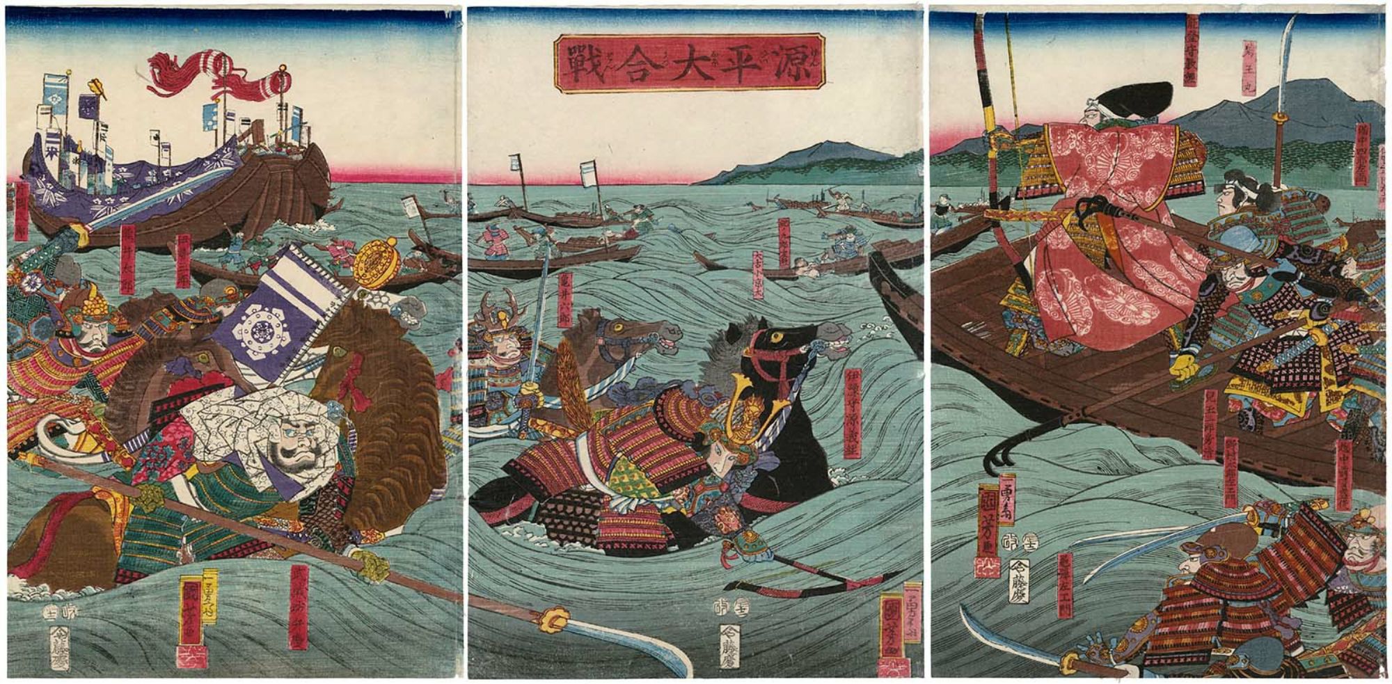 Ukiyo-e de Utagawa Kuniyoshi représentant la guerre de Genpei opposant les clans Minamoto et Taira (Museum of Fine Arts de Boston)