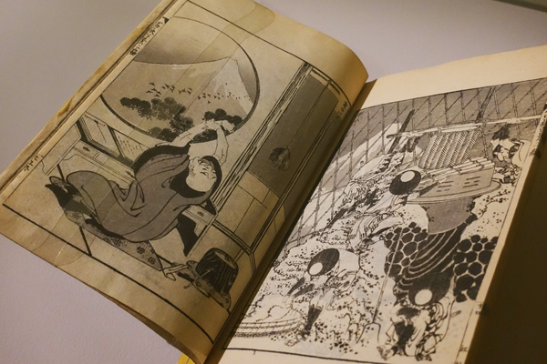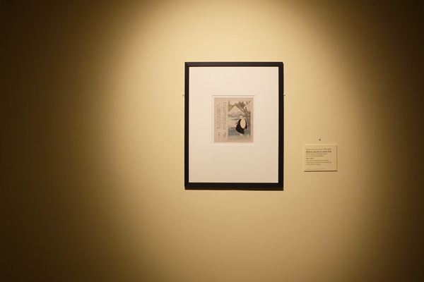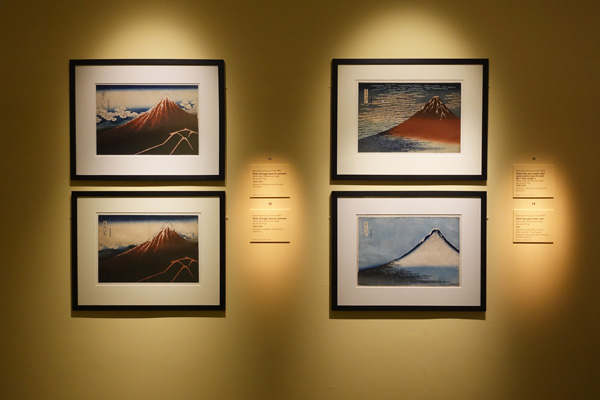 « Cependant, à y regarder de plus près, on assiste parfois à une réelle mise en abyme : en effet le Fuji que l’on aperçoit dans un coin de l’estampe n’est pas toujours le Fuji réel, inscrit dans le paysage, mais sa représentation que cela soit sur un écran ou un panneau décoratif dans un intérieur, un motif sur un kimono, un éventail. Son omniprésence est le signe tangible de sa place dans l’imaginaire collectif du Japon » – Vincent LEFÈVRE, directeur des collections.