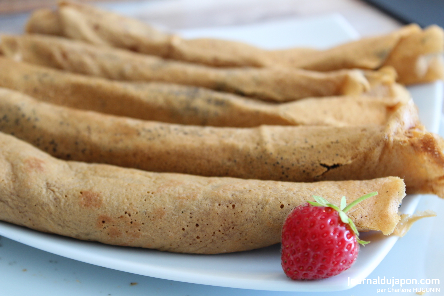 - Réservez-les sur le côté, badigeonnez-les de la confiture de sésame noir, ou de tout autre confiture, enroulez-les : voici vos crêpes prêtes à être dégustées !