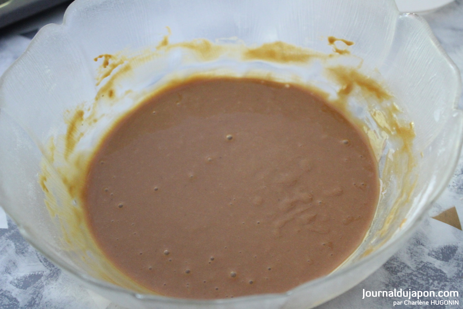 Commencez par casser l’œuf dans un saladier et à le fouetter. Ajoutez-y le sucre, et continuez à fouetter jusqu’à ce que les deux se mélangent bien ensemble. Prendre la poudre de Chinbin Mix, et la rajouter petit à petit jusqu’à obtenir une pâte sans aucun grumeaux. Une fois cette étape faite, incorporez le beurre fondu et mélanger jusqu’à l’obtention d’une pâte à l’aspect lisse.