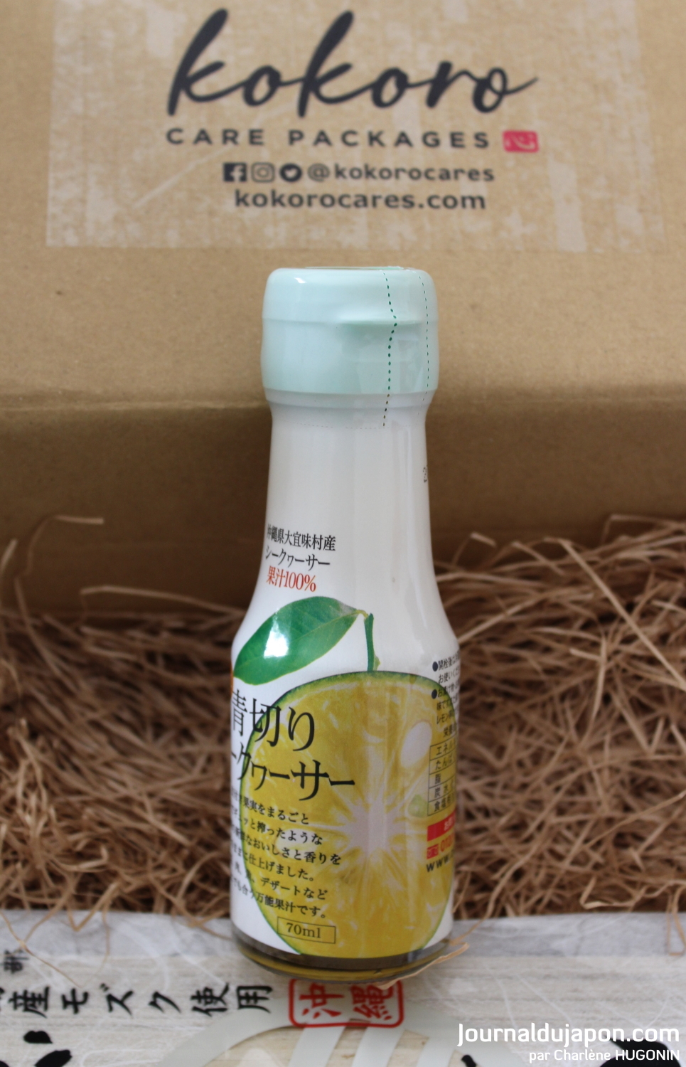 Le petit bonus de la box Kokoro Care Package, au-delà du fait que chaque produit peut être utilisé, c’est qu’on a un dernier produit utilisable de différente manière : la shikuwasa (hirami lemon) juice ! Cette bouteille de jus de citron est indiqué comme utilisable pour réaliser des sauces pour des plats à base de gyoza, sashimi, salade, tofu froid…