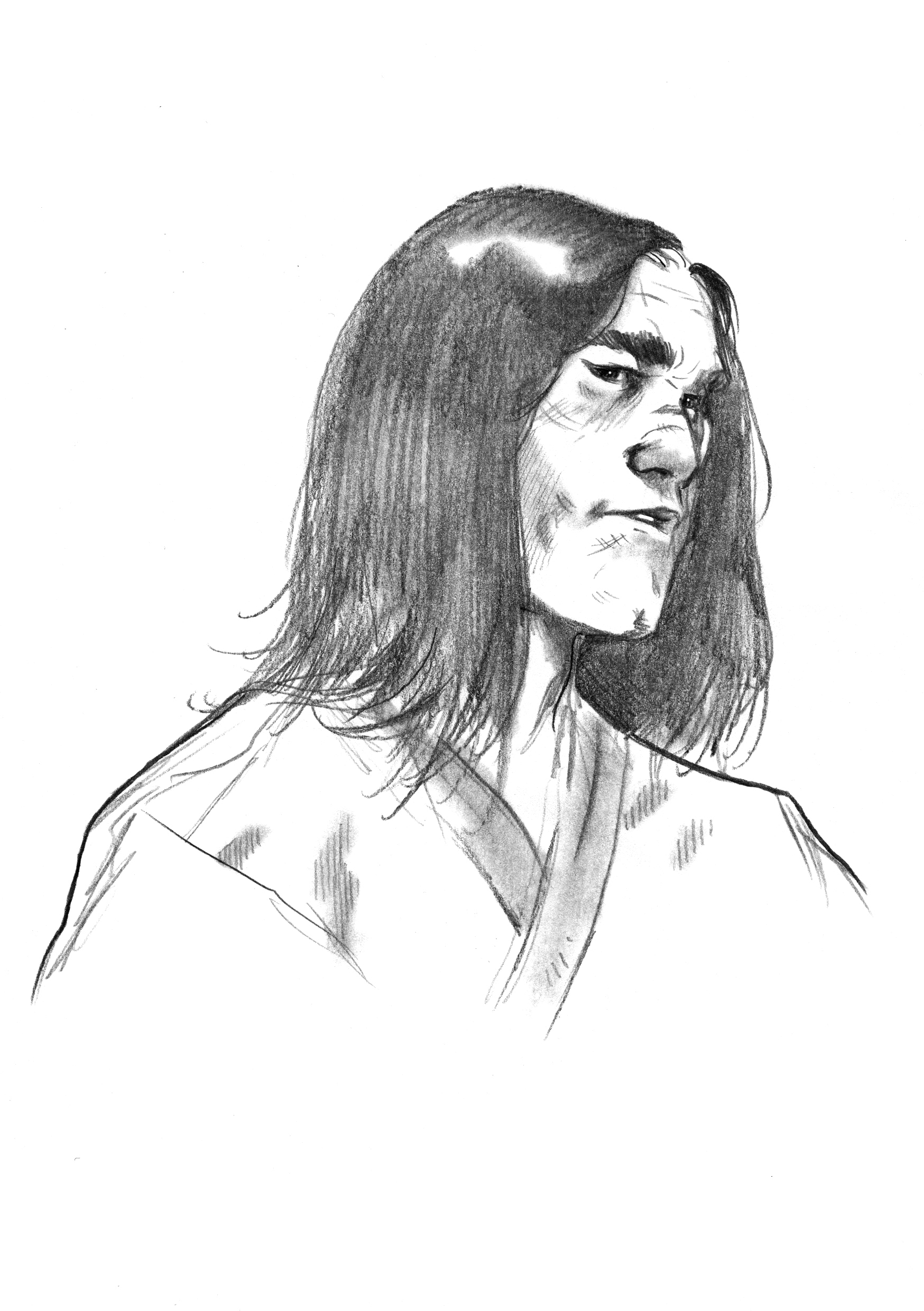 Le personnage qui m’a donné le plus de mal était justement le seigneur maudit. Je ne voulais pas d’un méchant simplement méchant. Je voulais des nuances, des faiblesses et une détermination qui était motivée par des évènements personnels. Ce personnage devait être un samouraï, lui aussi. Il devait s’agir d’un homme prêt à mourir pour respecter sa voie, une voie qu’il pense juste, mais dont le poids est plus lourd parce qu’il est un seigneur, pas simplement un bras armé.