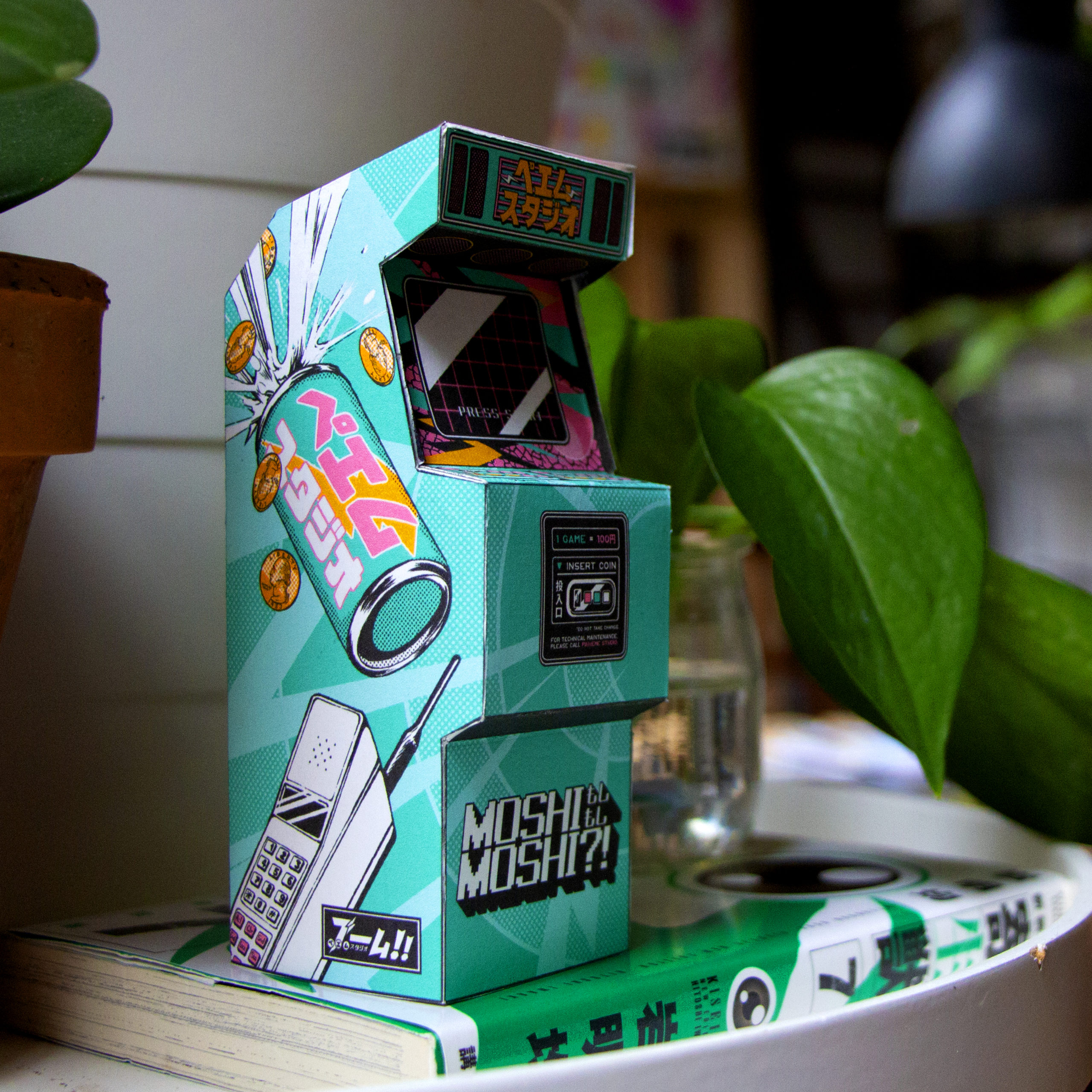 La borne d’arcade en papercraft a donc été le fruit d’une réflexion : comment les gens pouvaient-ils se divertir pendant une heure et en plus avoir gratuitement un petit bout de mon univers chez eux ? La réponse tenait en l’origami. Cela était cohérent avec mes inspirations japonaises et comme c’était un élément emblématique de la culture électronique, l’idée était toute trouvée. D’autant plus que sa forme rendait l’objet facilement constructible pour des enfants.