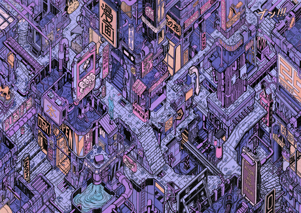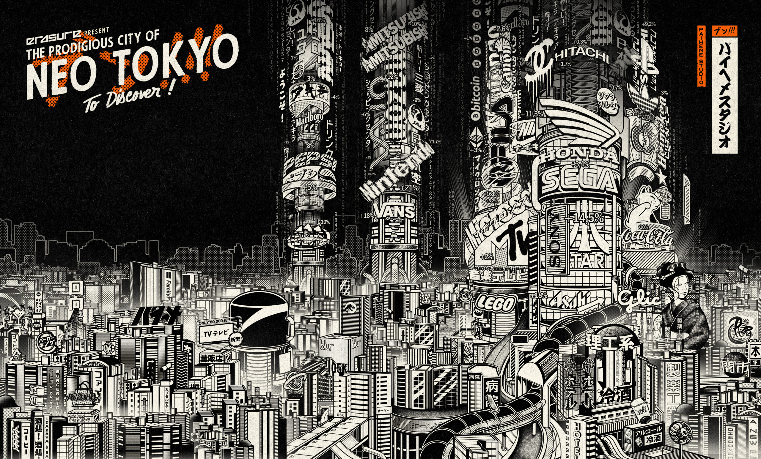 Nous aimons aussi particulièrement les différentes Neo Tokyo par leur surcharge esthétique. Tu sembles nous présenter la capitale japonaise comme une ville-labyrinthe ultra connectée et industrielle, est-ce la représentation que tu as de Tokyo ?