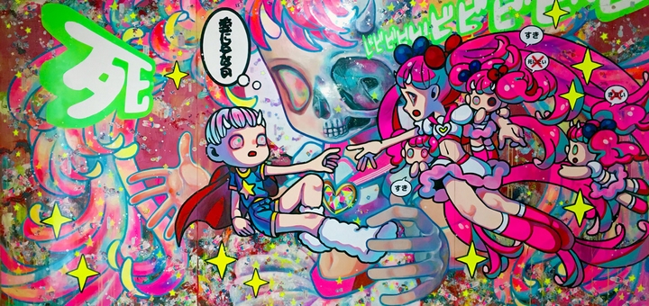 Les enfants qu’elle aime à dessiner sont l’image même des super-héros et des magical girl d’aujourd’hui : un détournement certain de ce que représente notre société et ses travers à ses yeux, avec la meilleure icône possible. Une magical girl (sous-genre utilisé en animé) pour révéler le malaise de nos sociétés, un super-héros pour représenter l’idée d’être adulte tout en défendant le monde construit par nos aînés. Une artiste donc complexe qui peint par envie afin d’ouvrir les yeux aux autres grâce à de nombreux personnages hauts en couleurs.