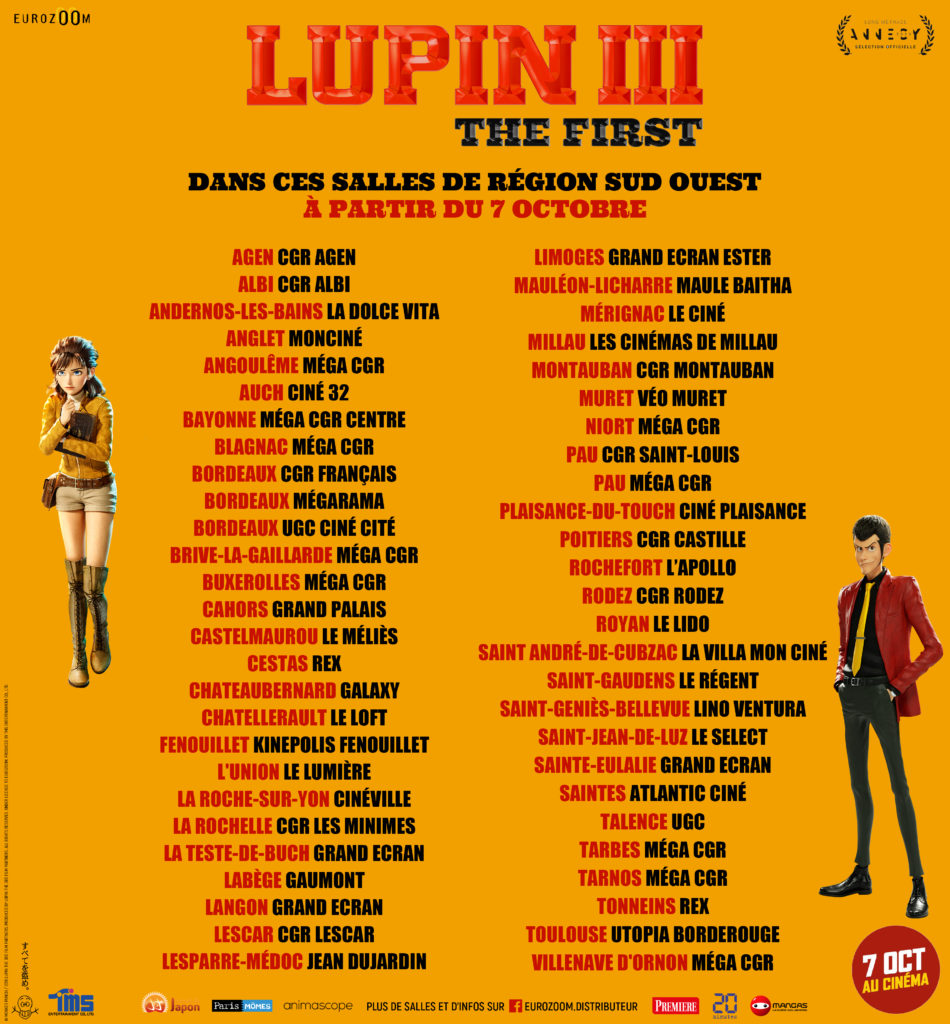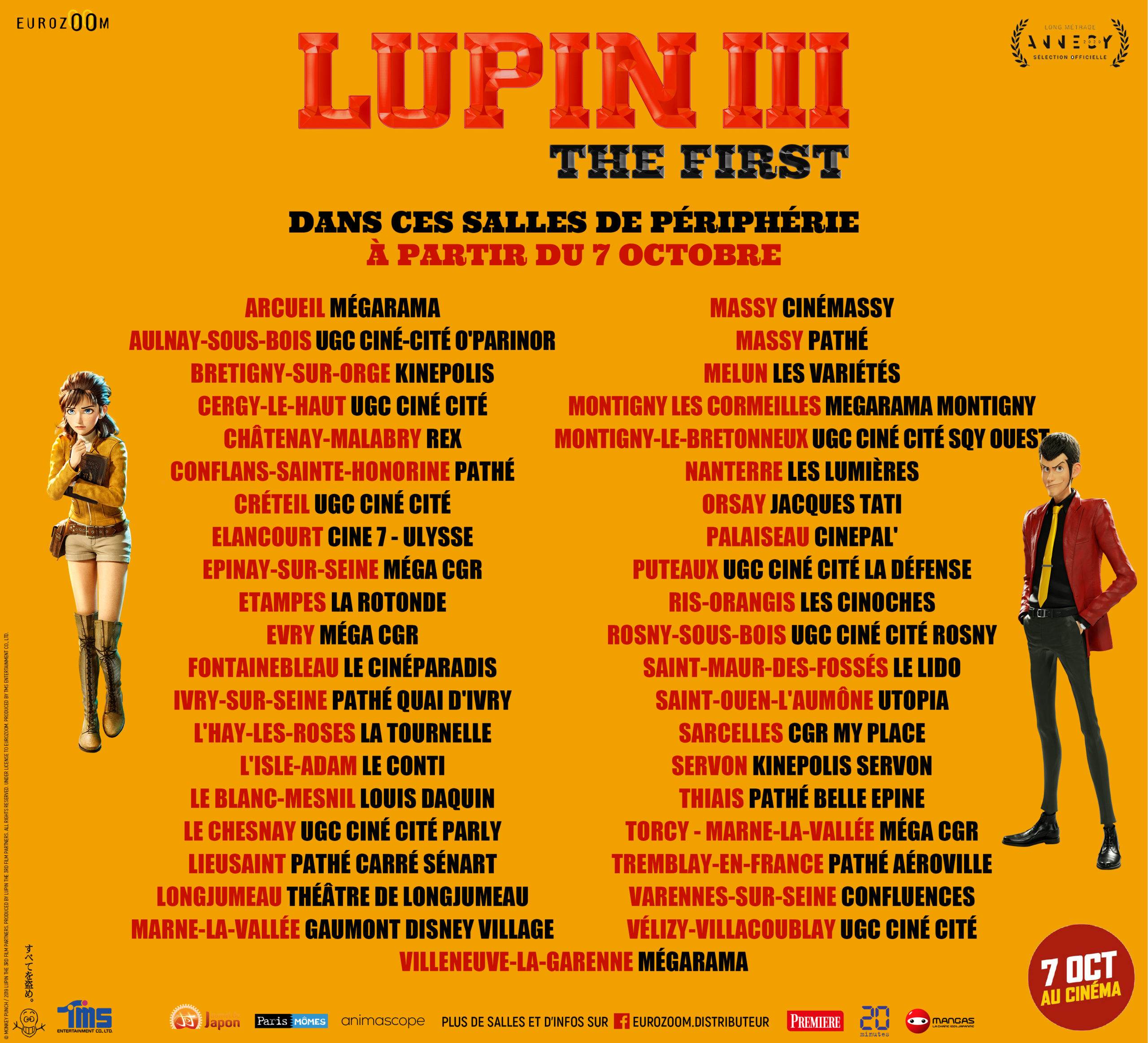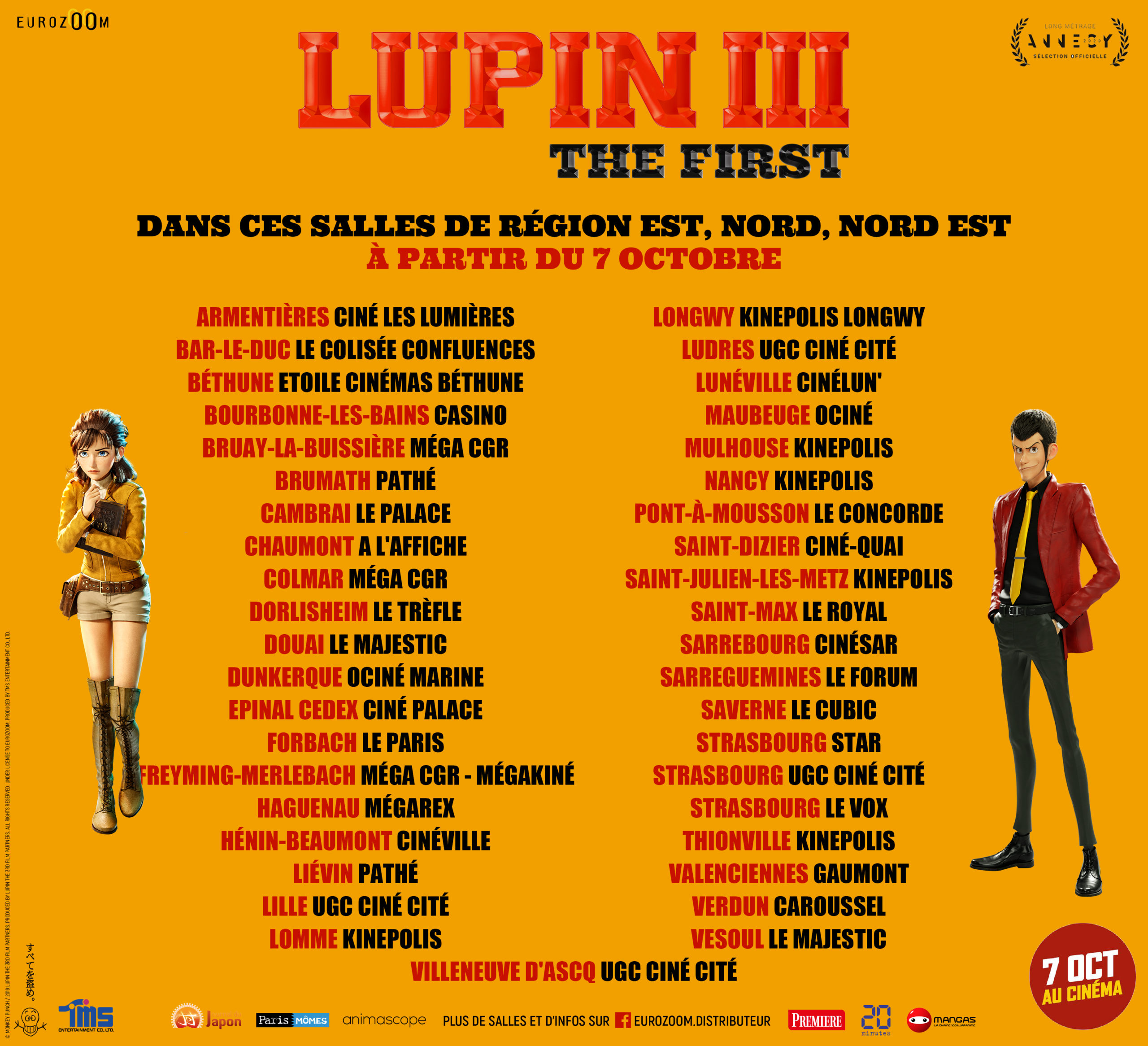 Parce que c’est un excellent film, parce que le monde du cinéma a besoin de ses spectateurs et parce qu’on ne sait pas forcément si nous pourront profiter longtemps des salles obscures, Journal du Japon et Eurozoom vous proposent de remporter des places pour vous et la connaissance de votre choix pour aller voir Lupin III : The First, au cinéma, qui sort ce mercredi 7 octobre. Du 8 au 14 octobre, gagnez vos places pour retrouver Le cultissime gentleman cambrioleur !