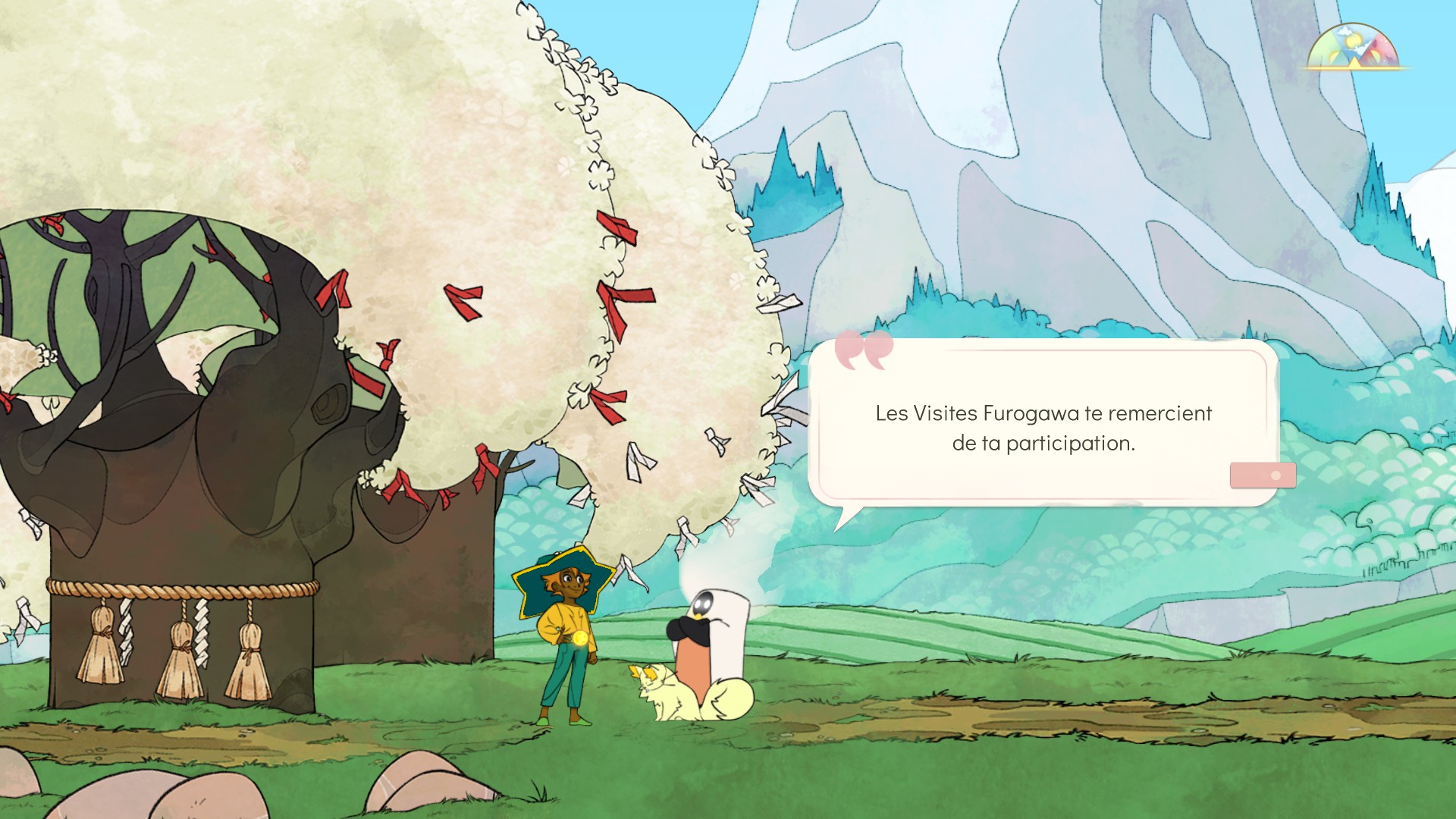 Comme vous pouvez l’imaginer, nous étions tous très enthousiastes à l’idée de baser une partie de l’univers de Spiritfarer sur certains lieux de l’archipel ! Une région entière du jeu est en effet inspirée des village de Shirakawa-go dans la préfecture de Toyama. Ces villages sont de véritables havres de paix montagnards idylliques avec leurs minka [NDLR: maisons traditionnelles japonaises] de type gasshō-zukuri, classées au patrimoine mondial de l’humanité. Certaines rizières de la région ont aussi servi d’inspirations pour plusieurs lieux, ainsi que des symboles classiques de la culture mythique et religieuse nippone comme les shimenawa (NDLR: cordes sacrées) présentes sur les arbres et les rochers consacrés.