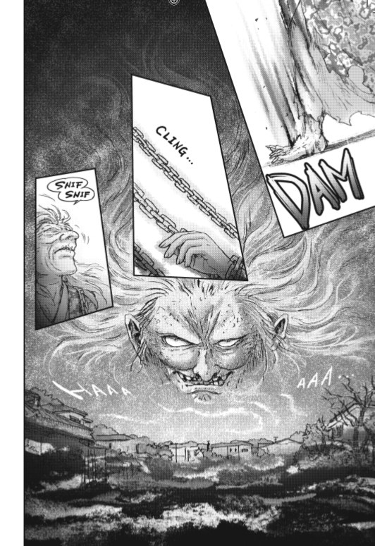 Ils incarnent chacun l’universalité de leur personnage : un enfant dans ce qu’il a de plus fragile, de plus pur, et un jizo, représenté au Japon en statue souriante, dont Jizo est une personnification magnifiquement réussie. Et que dire de la méchante femme qui traîne des enfants au bout de ses chaînes et hume l’air pour trouver d’autres enfants terrifiés, la tristesse ayant un parfum délicieux pour cette sorcière cruelle ! Ses apparitions envahissent toute la page, son visage effrayant est digne des plus grands méchants des contes ! Quant au rythme, il est parfait, alternant passages calmes et combats, souvenirs et moments présents.