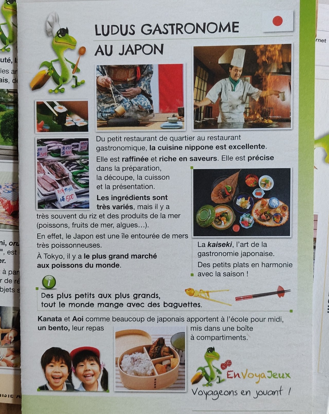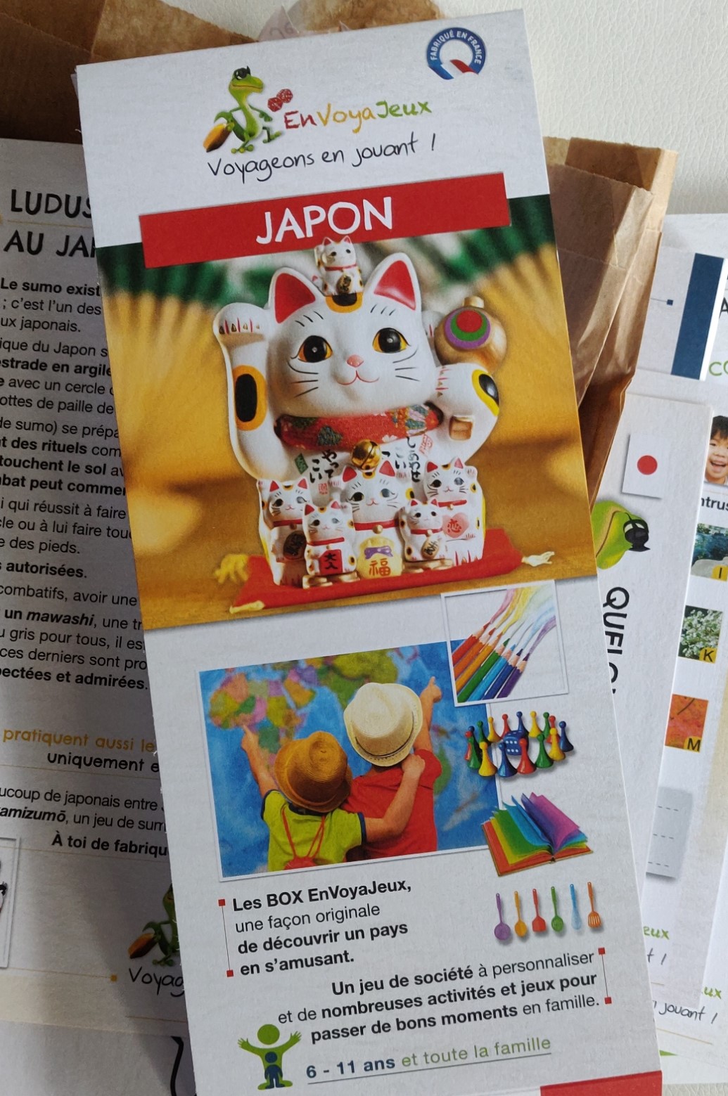 Si vous cherchez une box ludique pour enfant, traitant de thèmes bien spécifiques, alors Envoyageux est idéal ! Pour Journal du Japon, vous l’aurez compris, on s’est penché sur la box qui met en avant le Japon : sa culture, sa gastronomie, son histoire… En somme, on a décidé de partir à l’aventure avec Ludus, la mascotte, pour découvrir le Japon à ses côtés ! On va donc grâce à Aoi et Kanata, deux jeunes Japonais, aller à la rencontre de pans culturels et créatifs ou d’autres facettes du Japon. Peu encombrantes, les activités n’envahiront pas votre salon : tout est sous forme de fascicules !