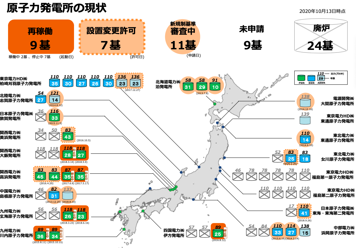 Carte des centrales nucléaires au Japon en 2020 de l’Agency for Natural Resources and Energy METI