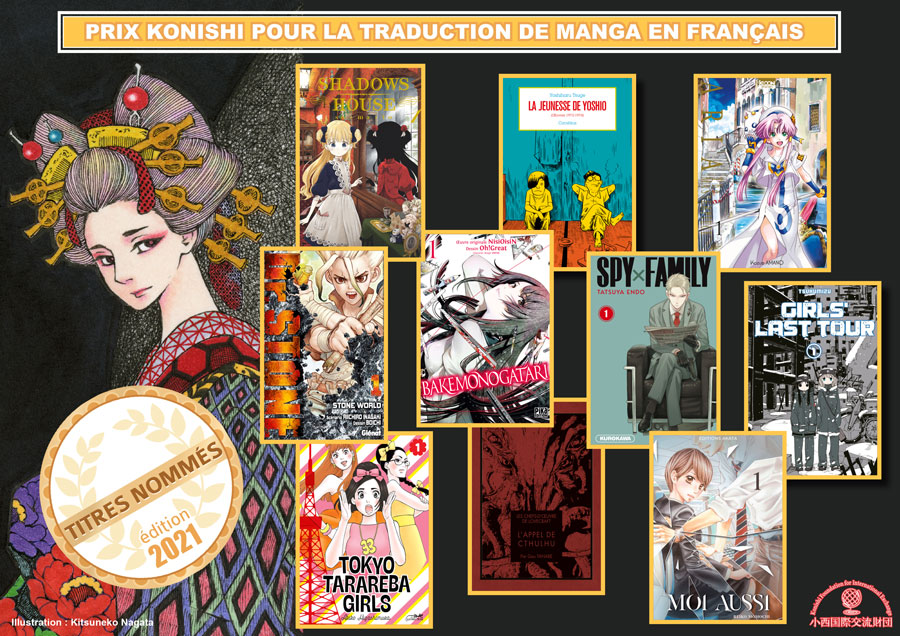 Rendez-vous donc fin janvier pour connaître la lauréat 2021 du Prix Konishi Manga. D’ici là, pour en savoir plus sur les titres nominés, nous vous conseillons de vous rendre sur le site internet du Prix qui présente les 10 mangas sélectionnés (avec résumé, avis du premier jury et du traducteur). Vous pouvez aussi suivre l’actualité du prix via leur compte Twitter ou leur page Facebook. Enfin, découvrez notre rubrique Paroles de Trad qui met à l’honneur le métier de traducteur !
