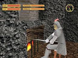 King’s Field sorti en 1994 sur PlayStation, et édité par From Software est un dungeon crawler en vue subjective, versant déjà dans le labyrinthe macabre, et peu recommandable aux novices. On incarne Jean Alfred Forrester, à la recherche de son père disparu, avec son escouade de soldats dans le cimetière souterrain d’un roi mort… Il fait l’objet de plusieurs séquelles, enrichissant les ludothèques de la PlayStation 2 et PSP.