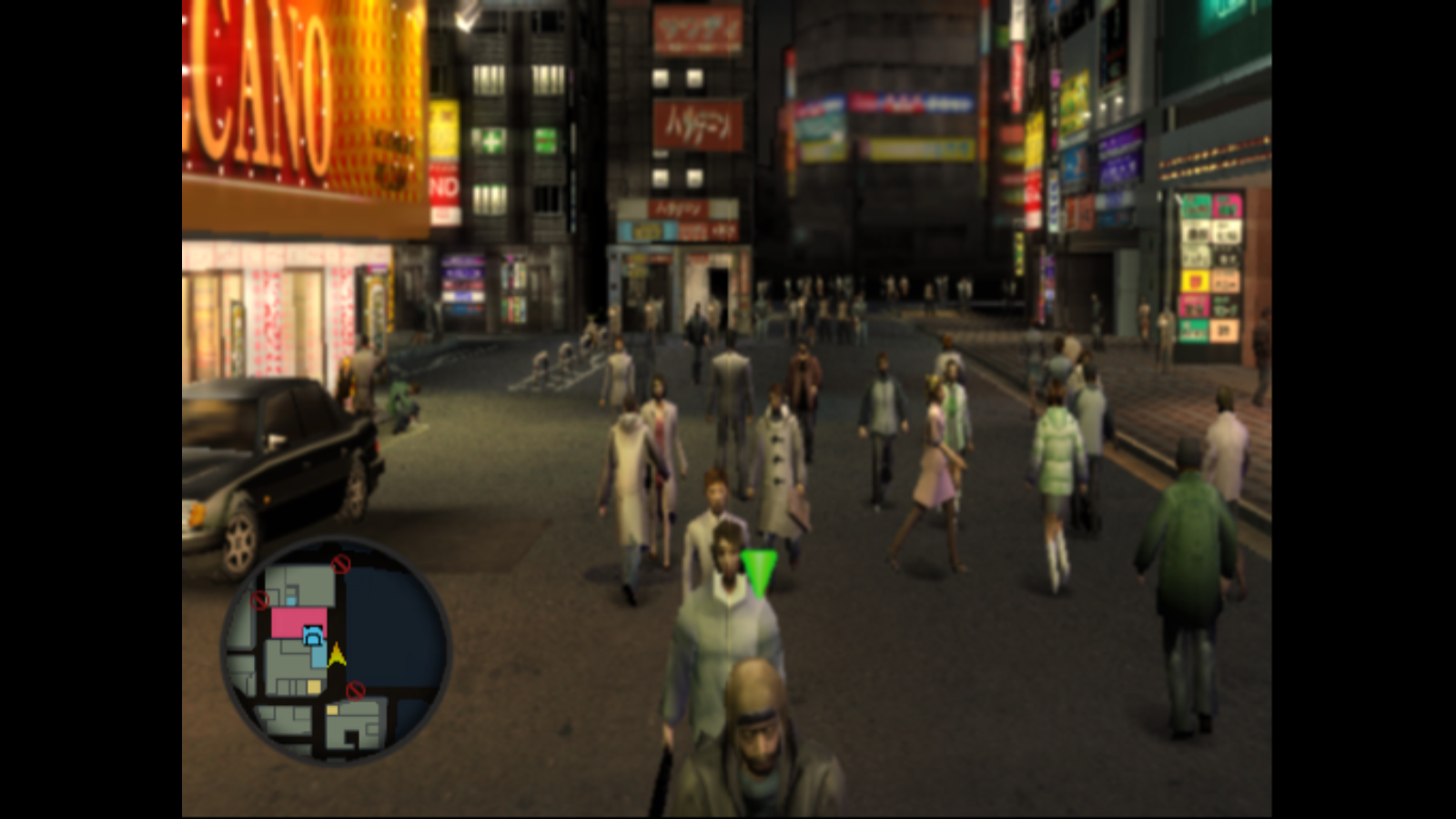 Ryu ga Gotoku est un jeu tout en 3D, on dirige donc son personnage dans les rues du quartier assez librement, comme dans n’importe quel jeu d’aventure. Sauf qu’à leur contraire, on se déplace sur des plans fixes, avec une caméra qui nous suit parfois en changeant d’angles pour plus de dynamisme, mais on ne peut pas la bouger à volonté. Il en est de même pour les combats, ce qui donne parfois des angles de caméra étranges. De plus, les décors ont beau être bourrés de passants, en train de discuter ou de se promener, sans que cela ne dérange la fluidité de ce qui se passe à l’écran.