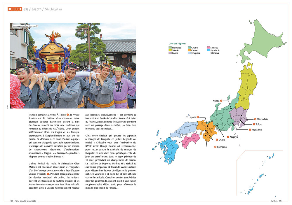 Des matsuri, il en existe des centaines. Par préfecture, par ville ou même par quartier, les fêtes traditionnelles japonaises ne cessent de rythmer la vie des Japonais au fil de l’année. Un article ne suffira jamais à faire le tour de la question, et nous vous encouragerons toujours à découvrir de nouvelles choses sur cette belle culture grâce, entre autres, à des lectures. Dans ce billet, c’est Une année japonaise des Éditions Ynnis qui nous a accompagné, et nous vous le conseillons bien évidemment puisque « clef de décryptage de la société japonaise, [Une année japonaise] peut également servir de complément aux guides des futurs voyageurs […]« . Un beau livre à se procurer autant pour apprendre que pour planifier sa prochaine visite au pays du Soleil-Levant.