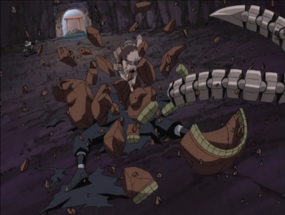 Ce combat de deux femmes ninjas contre le Scorpion de l’Akatsuki (sasori en japonais) du début de Naruto Shippuden permet de voir la progression importante de l’élève de Tsunade. L’éternel boulet de l’équipe 7 va enfin pouvoir montrer ses talents : tout d’abord ses jutsu de soin mais aussi la même force herculéenne que son maître ! Sakura Haruno devient une kunoichi accomplie, alimentant la bataille de fans qui ont du mal à se départager entre Sakura et Hinata… Grâce à l’aide de Chiyo, les deux parviennent à éviter les aiguilles empoisonnées de Sasori. Grâce à sa force et sa maîtrise du chakra, Sakura réussit à pulvériser la première marionnette Hiruko.