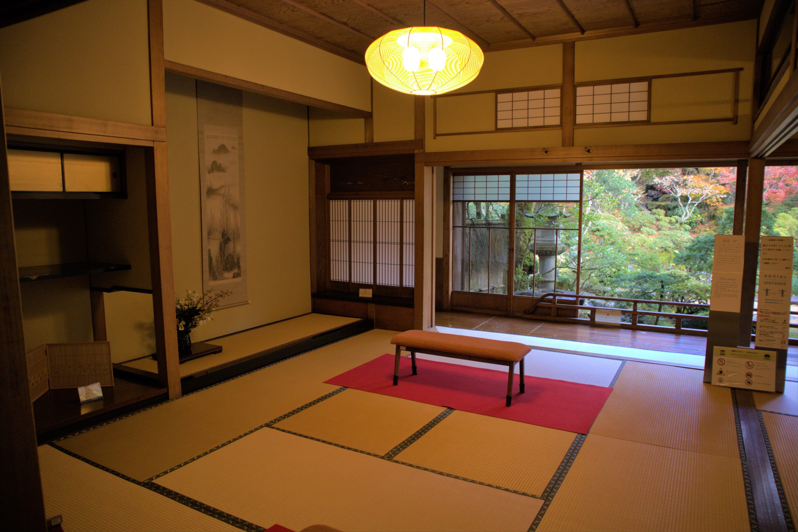 Autre villa de renom et de charme, la Villa Saitō, achevée dans les années 1920, appartenait à une famille de marchands de l’ère Meiji et du début de la période Shōwa. Dans la pièce de réception, on retrouve les éléments caractéristiques du style shoin-zukuri : tokonoma (alcôve surélevée pour poser rouleaux de calligraphie ou autres éléments de décoration), chigaidana (rayonnage d’étagères décalées), tsukeshoin (bureau d’étude devant une fenêtre dont la lumière est filtrée)… De charmants salons de thé intimistes sont répartis en enfilade le long de l’engawa, une sorte de véranda en bois surélevée qui court tout autour de la maison. Une pièce est même dévolue au change de la tenue des geigi, les geishas locales.