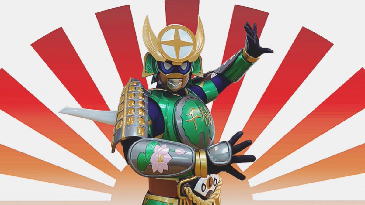 Hôjin Yatsurugi, que l’on peut traduire littéralement Dieu Phénix Yatsurugi est un Local Hero du département de Chiba. Son apparence et son histoire prennent appui sur les mythes de la ville de Kisarazu. L’empereur maléfique des fonds marins Zabun s’est délivré des huit sceaux qui le retenaient prisonnier. C’est alors que Takeru YAMATO, jeune pêcheur trouve échouée sur la plage une pierre sur laquelle est gravée un phénix. Cette mystérieuse pierre s’avère-t-être l’un de ces sceaux et permettra à Takeru de se transformer en Yatsurugi pour pouvoir protéger la ville de Kisarazu du terrible Zabun. Des bases simples pour le genre mais pour une aventure qui continue encore aujourd’hui à être diffusée ! Hôjin Yatsurugi fait en effet parti de ses local hero à « gros budget » qui ont la chance de bénéficier d’une série rien qu’à eux. Depuis sa première saison en 2011, Hôjin Yatsurugi en est à sa neuvième série diffusée il y a tout juste un an. Sans compter les films et les épisodes spéciaux qui ajoutent encore pas mal de contenus ! Il est par exemple à la base du film de 2015 Nihon Local Hero Dai Kaisen, La Grande bataille des Local Hero japonais. Un grand palmarès pour le héros d’une ville plutôt modeste comme Kisarazu, et on peut féliciter la société Yatsurigitama qui s’occupe du héros depuis 2014, en plus d’organiser le Local Hero Matsuri et de lancer d’autres projets de Local Hero. Pour les plus curieux, le premier épisode de la première saison de Yatsurugi est disponible légalement sur Youtube mais sans sous-titres.