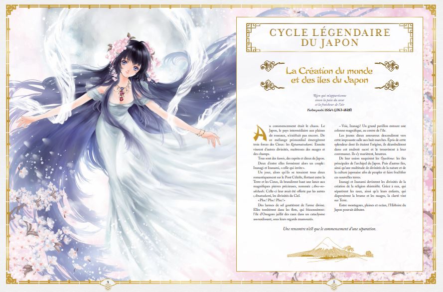 Cet ouvrage est né, à l’origine, de notre rencontre à Japan Expo avec l’artiste Shiitake. Suite à cela, nous avons commencé à travailler sur l’ouvrage Contes Merveilleux, portant sur les contes européens. Travailler sur les très riches contes et légendes de l’archipel était ensuite une évidence.