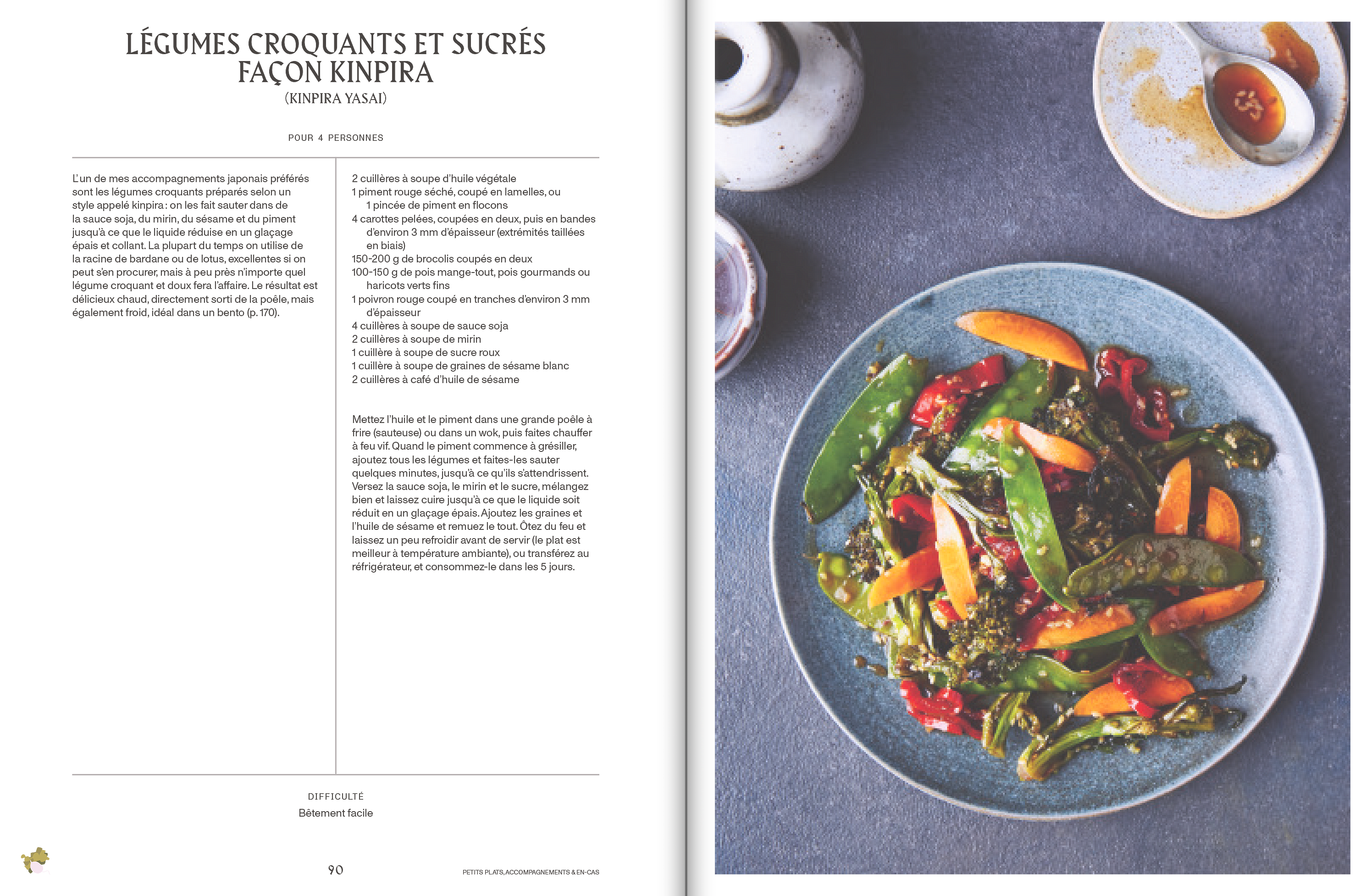 – petits plats, accompagnements et en-cas : de délicieuses carottes rôties façon teriyaki, différents pickles, des onigiri (en version grillée également), des croquettes (poireaux petits pois pommes de terre, ou maïs doux au curry), deux recettes de gyoza vegan (au kimchi et tofu, ou aux champignons aillés et pousses de bambou)…