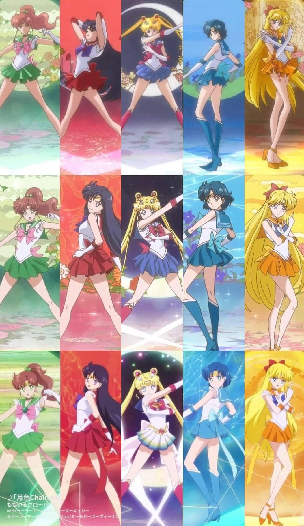 Une belle promesse qui en ravira plus d’un, mais qui essuiera de nombreuses critiques lors de la diffusion des premiers visuels. Le design des personnages de la première saison de Sailor Moon Crystal (14 épisodes), que l’on doit à Yukie SAKO, divise le public : les personnages aux mentons extrêmement fins et aux yeux et jambes démesurément grands se rapprochent bien plus de ceux de l’œuvre originale que de la première adaptation animée. Ils collent aux traits si caractéristiques du dessin de Naoko TAKEUCHI qui fait le charme du manga, mais ce n’est pas au goût de tout le monde en ce qui concerne l’animation. À cela se couple une animation 3D particulièrement désagréable utilisée pour les scènes cultes des transformation des guerrières, qui au passage se voient dénudées de la bande-son originale, culte elle aussi. Le résultat a donc du mal à passer, comme vous pouvez en jugez par vous-même avec cet avant/après :