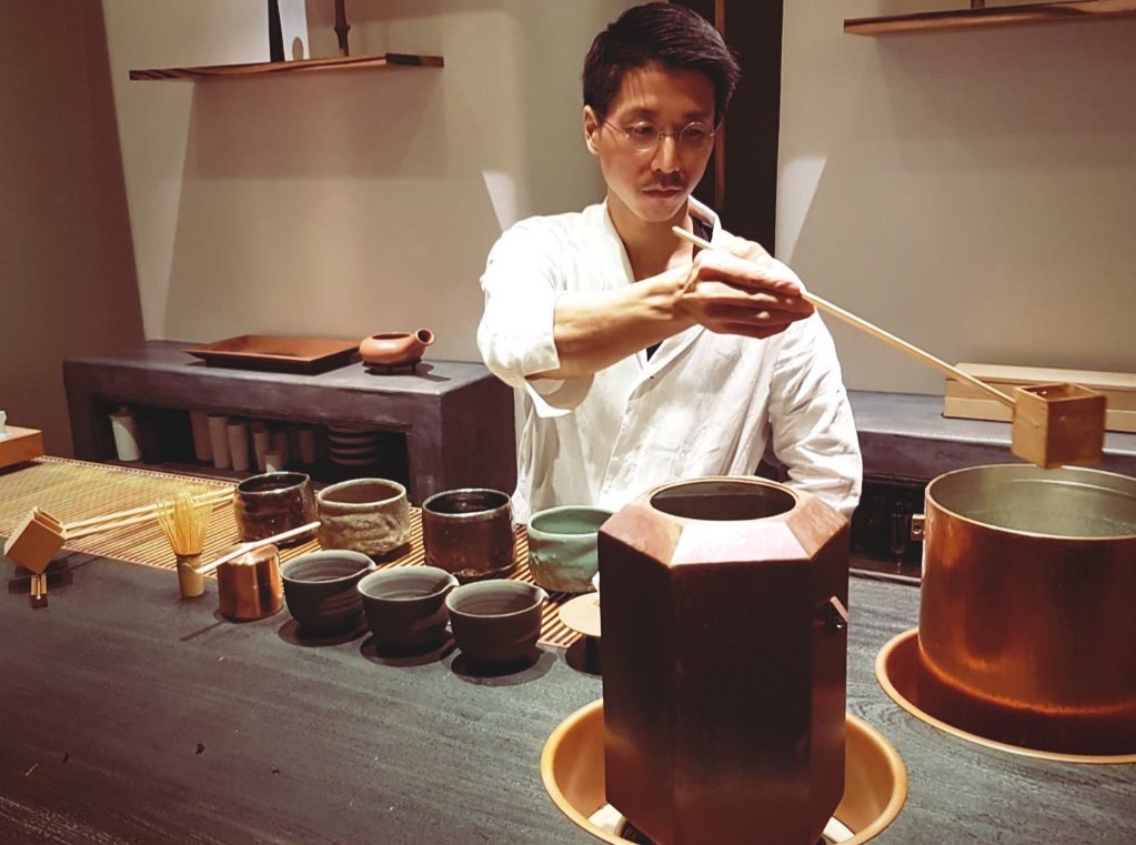 Le fondateur de ce lieu n’en est pas à son premier coup de maître. Shinichiro Ogata est né à Nagasaki. Ses espaces au Japon reflètent une soif perpétuelle de pousser la culture millénaire de son pays dans chaque geste et objet du quotidien. Il exalte les 5 sens en tissant un lien invisible entre les piliers de l’Art de Vivre japonais: le thé, la gastronomie, l’artisanat, l’hospitalité et la culture. Ainsi se définit la voie du Sahô: chaque attitude du quotidien se fait avec simplicité et raffinement, depuis les échanges de salutations jusqu’à la cérémonie du thé. Intéressé très jeune par les arts culinaires, Shinichiro Ogata grandit à Nagasaki, entre mer et montagne. La région riche en produit locaux frais offre une cuisine variée et adaptée à chaque saison. C’est donc tout naturellement que la culture du thé entre dans sa vie entre plats saisonniers et manju locaux (gâteaux japonais cuits à la vapeur et fourrés à la pâte de haricots rouges). Attiré très jeune par les arts culinaires, c’est à sa majorité à peine qu’il décide de se diriger vers la restauration et la décoration d’intérieur. Projet qui restera en suspens encore quelques années. Son père ne considérant pas ces domaines comme de véritables métiers, Shinichiro Ogata poursuit ses études et rejoint une agence d’architecture d’intérieur. Telle une éponge, il absorbe l’environnement qui l’entoure, les objets, les ambiances. Les voyages le nourrissent, l’inspirent. Il noue une attache particulière pour New York, avant de décider des années plus tard de poser ses quartiers à Paris où il vit depuis 2017.