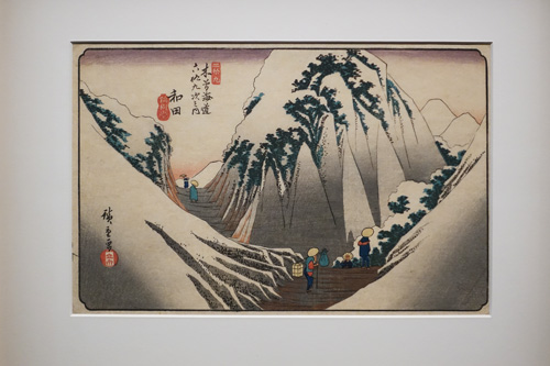 L’exposition présente pas moins de 150 estampes des célèbres Utagawa Hiroshige et Utagawa Kuniyoshi. Ces deux séries complètes sur le thème du Kisokaidō offrent un regard tout à fait distinct sur cette ancienne route commerçante et témoignent des différentes représentations artistiques possibles d’un même sujet.