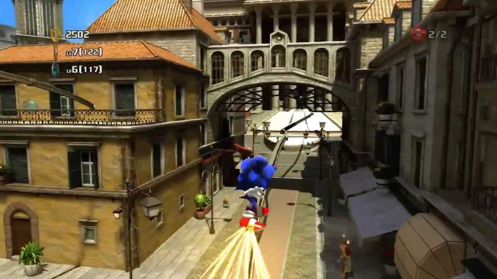 Et le coté sonore aussi fait peau neuve. Masato NAKAYAMA, laisse sa place principalement à Jun SENOUE, qui officiera également sur la plupart des jeux Sonic principaux, de ce changement jusqu’à maintenant. Son style va quelque part entre un coté plus rock, tout en gardant cet air typiquement Sonic Team parfois un peu fun, parfois plus rêveur comme on peut l’entendre dans nombre de leurs jeux. C’est également le moment à partir duquel le hérisson et ses amis sont dotés d’une voix (Jun’ichi KANEMARU au Japon et… plein de personnes différentes pour les versions anglophones).