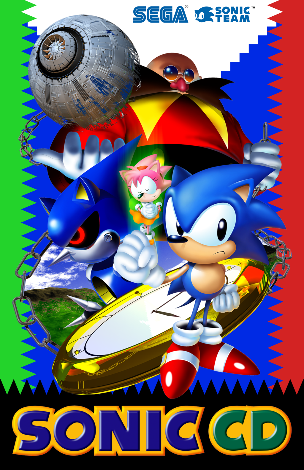 Revenons tout de même un an plus tôt pour aborder l’opus le plus étrange et pourtant loin d’être dénué de qualités : Sonic CD, sorti sur l’extension MegaCD de la console. Ce dernier, se passant entre les deux premiers épisodes, voyait apparaître Amy Rose (donc le premier vrai allié de Sonic, chronologiquement parlant). Beaucoup moins joué à cause de son support peu populaire, il était forgé dans un gamesystem particulièrement original : on pouvait voyager entre le passé, le présent et le futur pour déjouer les plans du vil Robotnik et en fonction de ce que le joueur faisait, arriver à une bonne ou mauvaise fin. Sonic n’avait pas encore son fameux Spindash, l’attaque où il se roule en boule et fonce à toute vitesse mais un mouvement plus proche d’une course encore plus rapide.