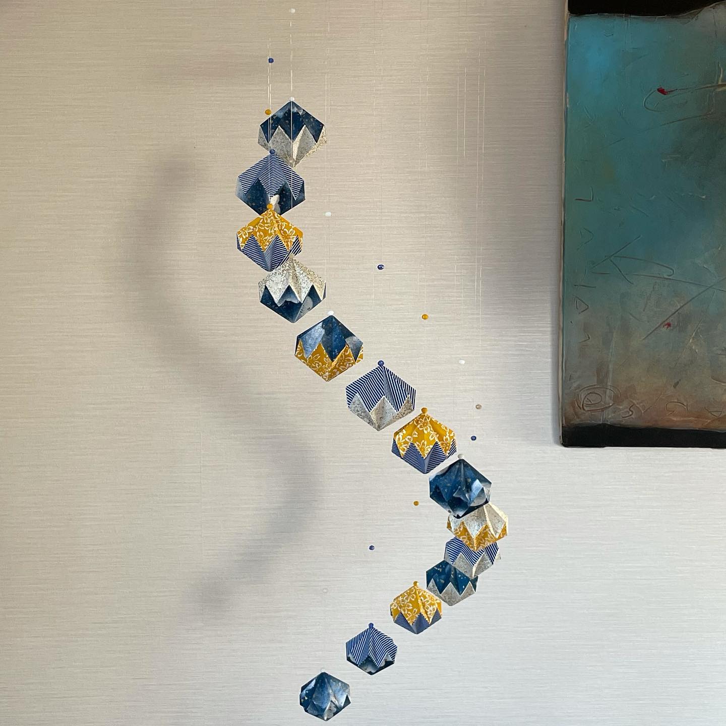 Car si elle a toujours aimé les activités manuelles et qu’elle adorait proposer des activités créatives à ses deux filles quand elles étaient petites, le travail a vite dévoré tout son temps et ces activités-là ont été mises de côté. L’origami croise à nouveau son chemin il y a six ou sept ans, avant le Japon, lors d’un atelier origami organisé dans la ville où elle habitait. Depuis, il est devenu une activité familiale qui s’est installée au fil des week-ends et qui lui apportait détente et apaisement. Elle commence alors à proposer des guirlandes de grues au profit d’associations caritatives mais cela s’arrêtait là…