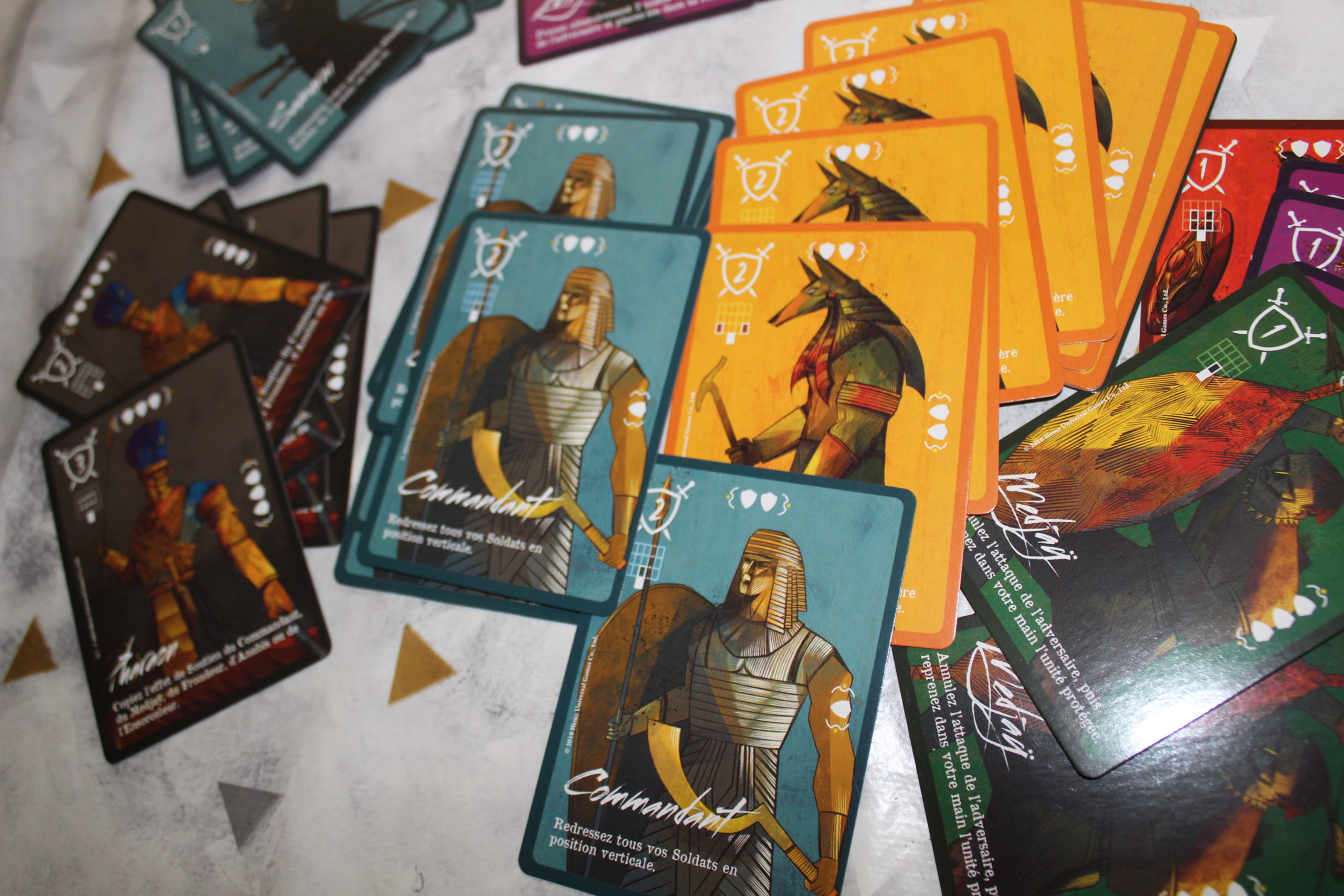 Un jeu à deux joueurs donc qui ne laisse aucune place aux doutes ! Avant de vous lancer dans la bataille de cartes, on vous invite fortement à regarder les vidéos disponibles sur la page du jeu. Les règles assez vite intégrées en réalité, on accroche bien au jeu et le plaisir vient rapidement ! Et puis, un jeu où un Shogun peut renverser un Pharaon, vous en connaissez beaucoup, vous ? Mention spéciale aux designs des cartes et des personnages qui sont vraiment très chouettes et qui mettent dans l’ambiance. Bref, une belle surprise et je compte bien continuer à massacrer mon compagnon à chaque partie ! Et si jamais vous cherchez à jouer en ligne au jeu, notez que le site Tabletopia, propose de faire des parties : un bon moyen peut-être pour découvrir le jeu avant de se procurer les 6 decks, non ?
