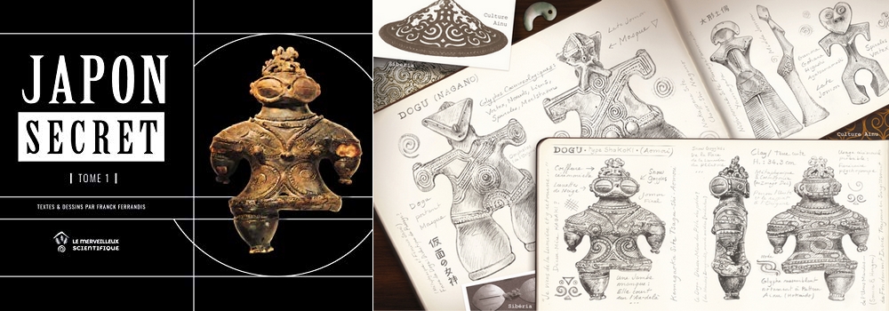Secret Japon remplit toutes ses promesses de découverte et de voyage dans le Japon ancien et mystérieux ! Les 3 tomes de 80 pages mêlant carnets de croquis et plus de 300 dessins et photos des sites rendent compte du voyage de leur auteur, Franck Ferrandis, à la recherche d’endroits insolites et reculés qui méritent d’être plus connus des visiteurs au Japon. Si les figurines de terre cuite, les dogū, ainsi que les kofun ne seront pas pour la plupart d’entre nous des nouveautés, de nombreux monolithes seront des endroits à ajouter dans sa liste à visiter ! Les textes et leur jargon scientifique ou théologique pourront en rebuter certains mais les images, croquis et dessins de l’auteur savent s’apprécier et sont le cœur de l’ouvrage destiné à des curieux qui ont l’esprit ouvert en quête de l’ancien et secret Japon.